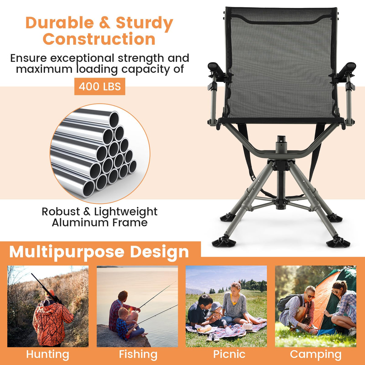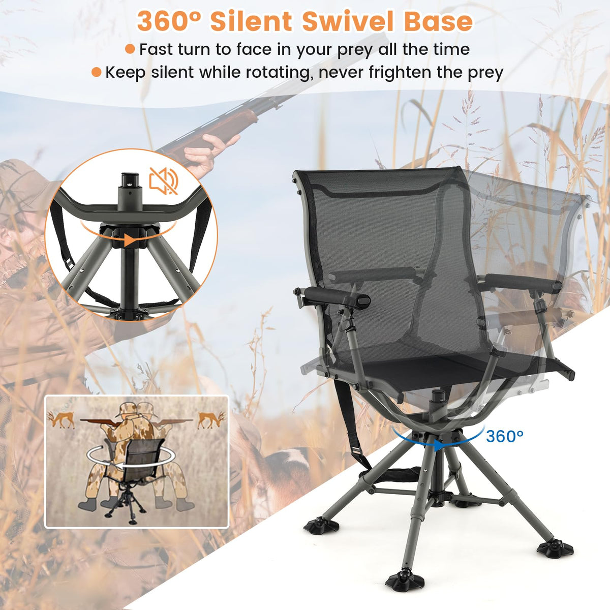 360° swivel seat helps you observe the prey in any direction without making noise