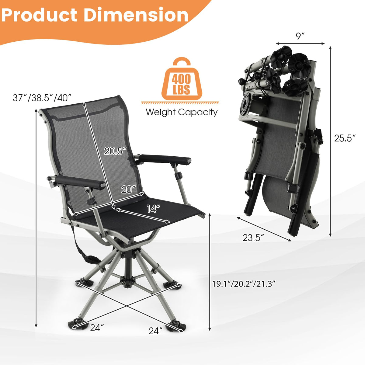 - Silent 360° Swivel Seat: The blind hunting seat can be smoothly rotated 360 degree, allowing you to quickly turn to face to your prey all the time. Without any squeaking and creaking, this adjustable hunting chair will not frighten the prey and keep you agile to follow your target.