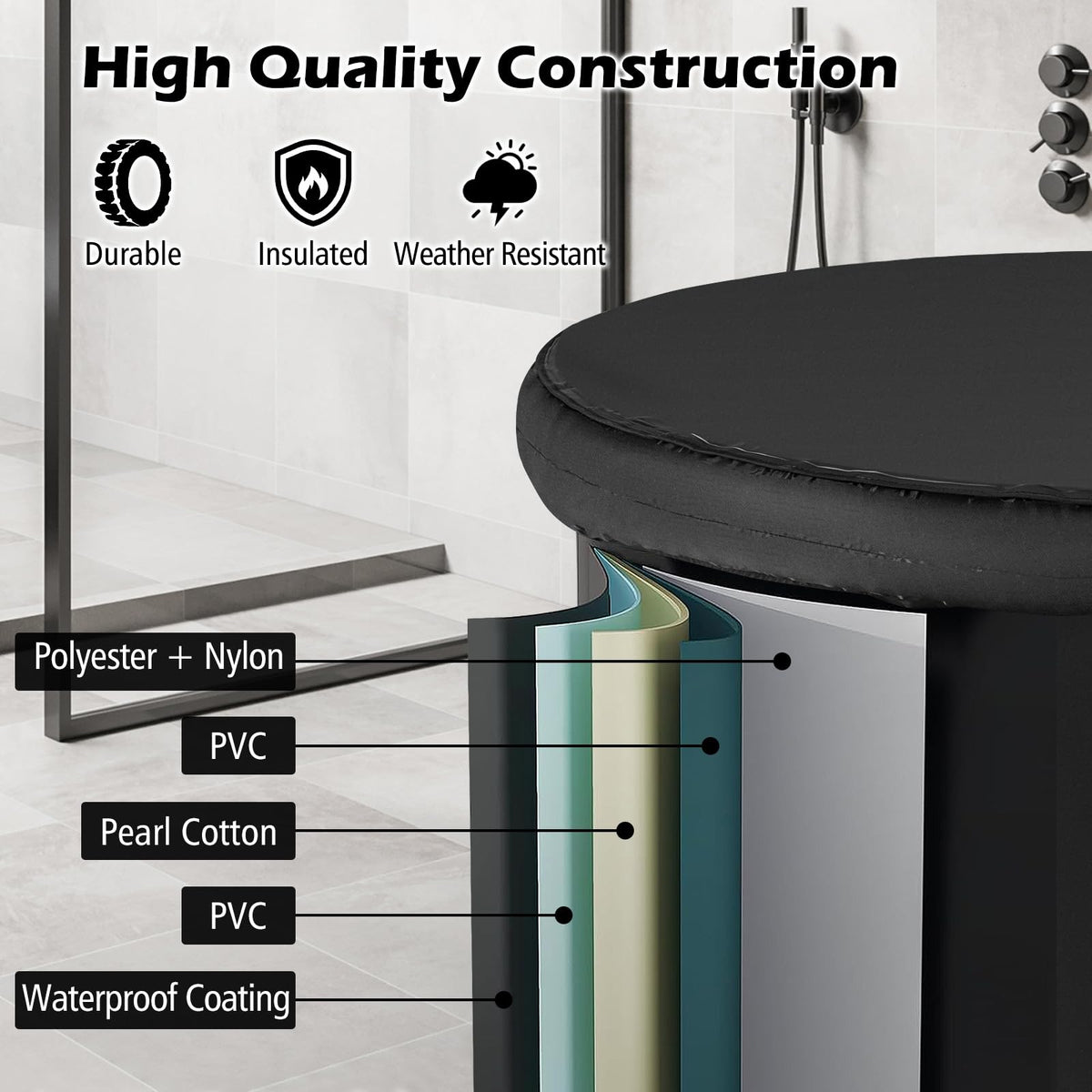 - Durable Material: Consist of 5-layer of high quality polyester, nylon, PVC, pearl cotton and waterproof coating, the bath tub is solid for long time use and insulted to maintain temperature. (withstand extreme weather from -4°F to 122°F)