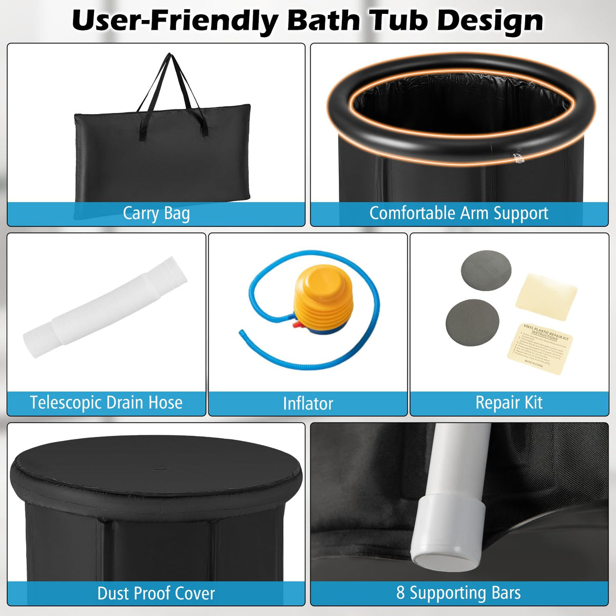 This 5-layer insulated bath is designed to offer you comfortable bath anywhere and anytime. What's more, you can improve your overall well-being with this portable ice bath, which can improve blood circulation, boost immunity and relieve muscle pain. Plus, this large multipurpose tub can be used in a variety of settings and provides ample space for a cozy bathing experience. Furthermore, equipped with a complete set of accessories including a dust proof cover, a carry bag, support tubes, manual air pump and repair kit, this portable ice bath offers ultra convenience.