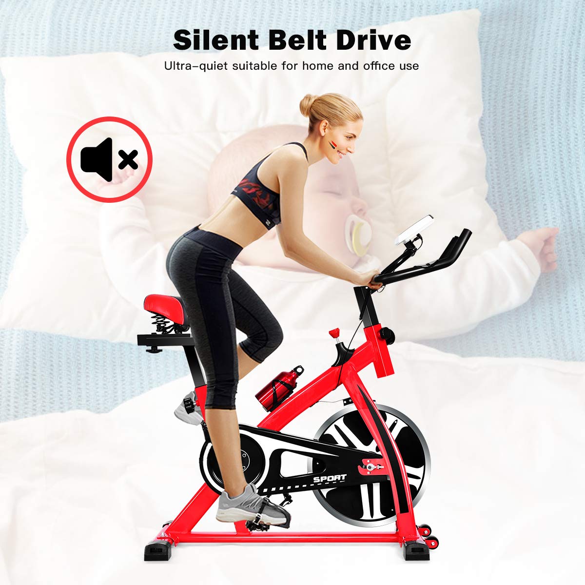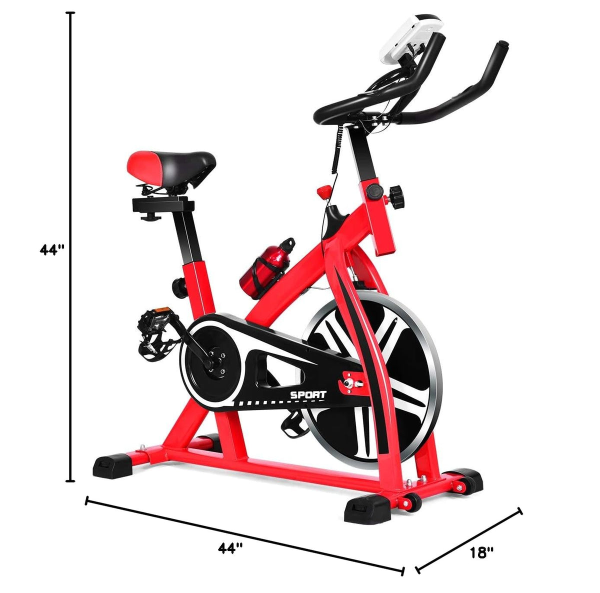 - Smooth Stationary Bike: GYMAX indoor exercise bike is consist of heavy duty frame and 18lbs flywheel, ensuring stability and safety while cycling. Belt drive system offers you a smooth and quiet ride, making it perfect for home/office use.