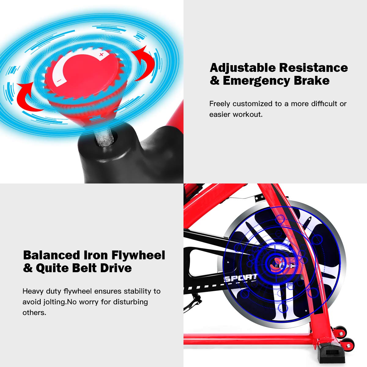 - Adjustable Resistance: This stationary bike has adjustable height and resistance, which provides you with more choices of workout intensity. Meanwhile, with max load bearing capacity of 330lbs, the cycling bike is suitable for all family members with different height and figure.
