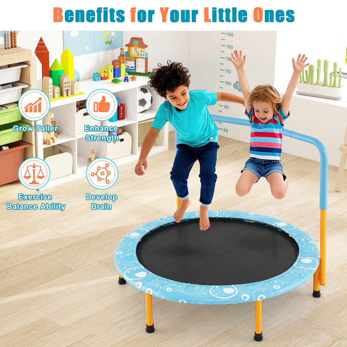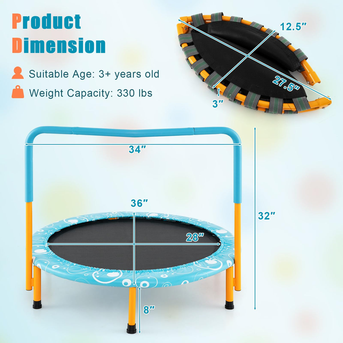 GYMAX Indoor Trampoline, 36” ASTM Approved Kids Trampoline with Removable Handrails & Safety Pad