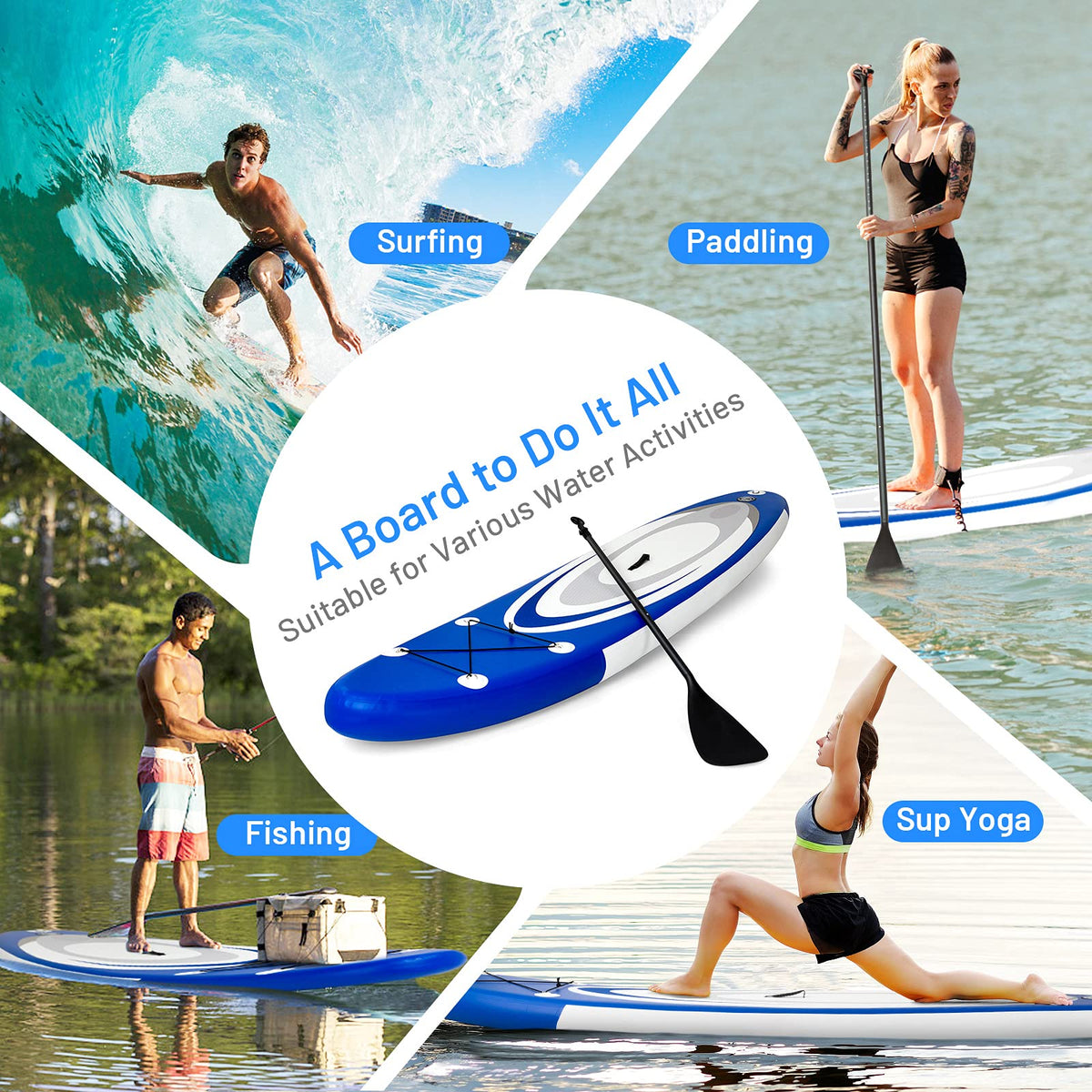 - 【Wide Application】Its large space allows more people to play on the water together. It is also perfect for all skill levels and suits in most water environments. You can take a cruise through oceans, lakes or rivers. And it also can be used for surfing, water yoga, fishing and other interesting activities with water.