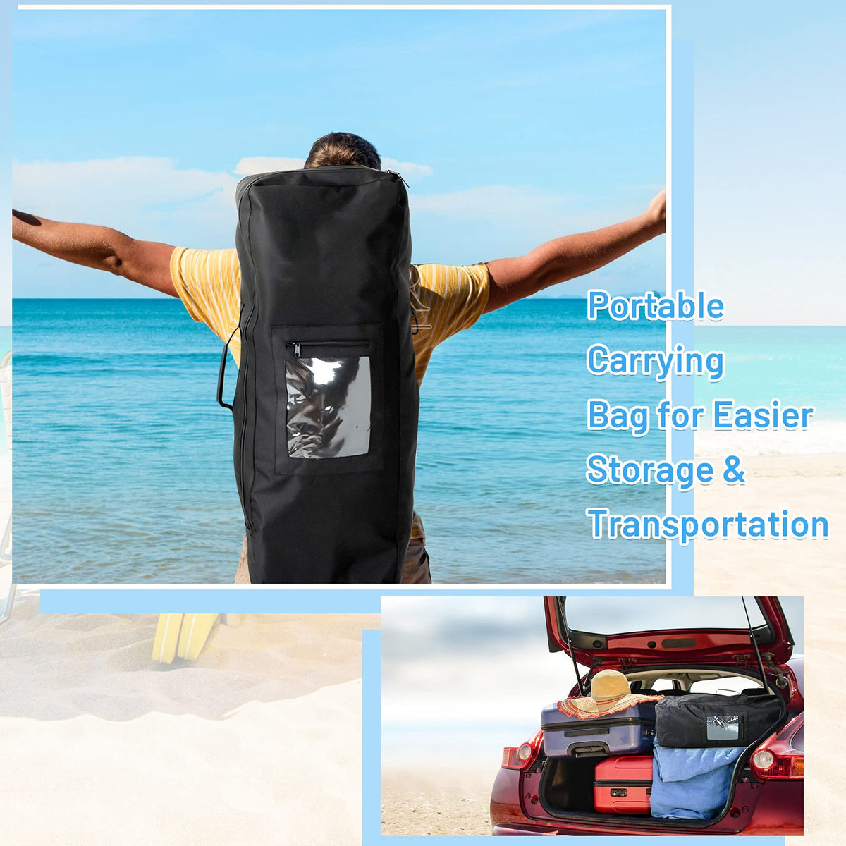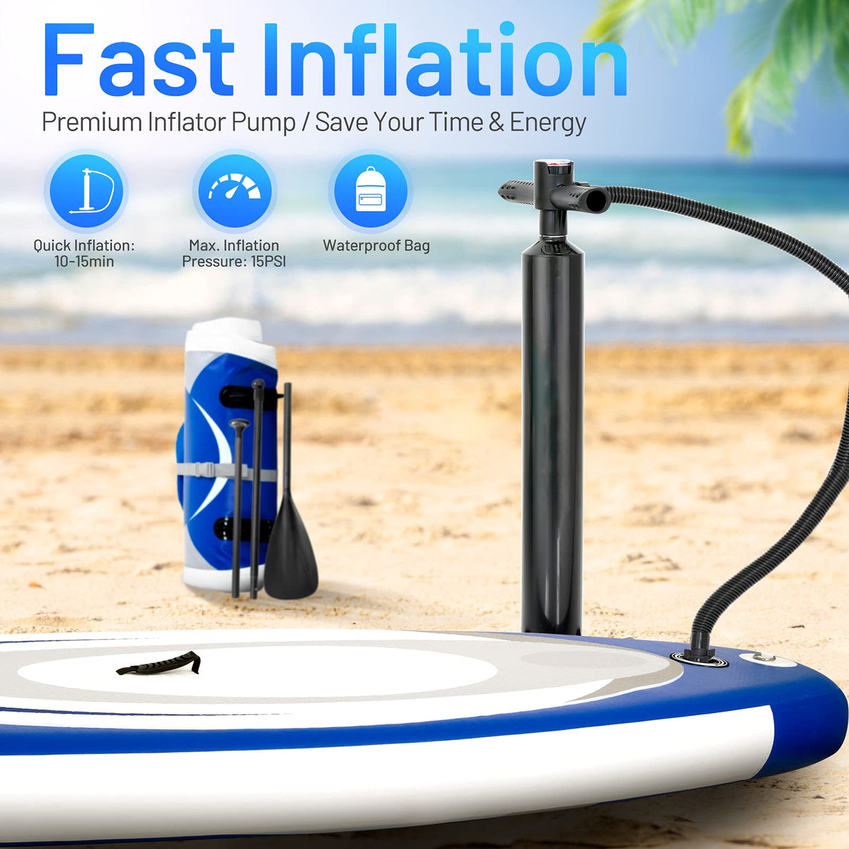 - 【Easy to Carry and Store】It comes with a carry backpack, when the board deflated and rolled up, you can easily store and transport it to wherever you want to go. And when you inflate the paddle board, there is a carrying handle on the board, which is really convenient for use.