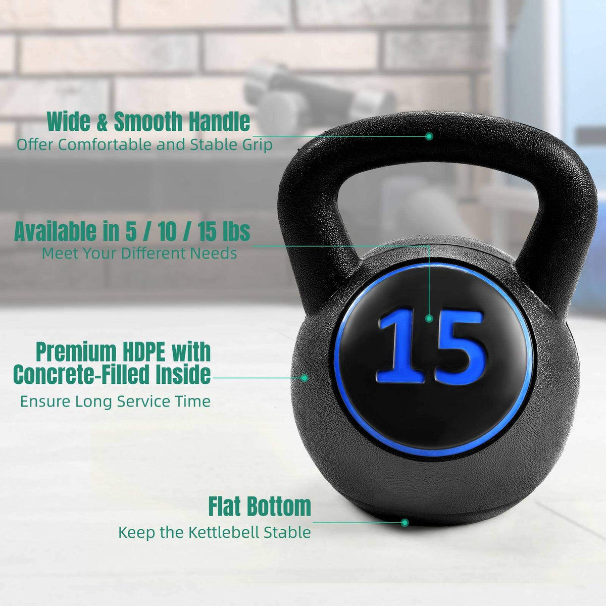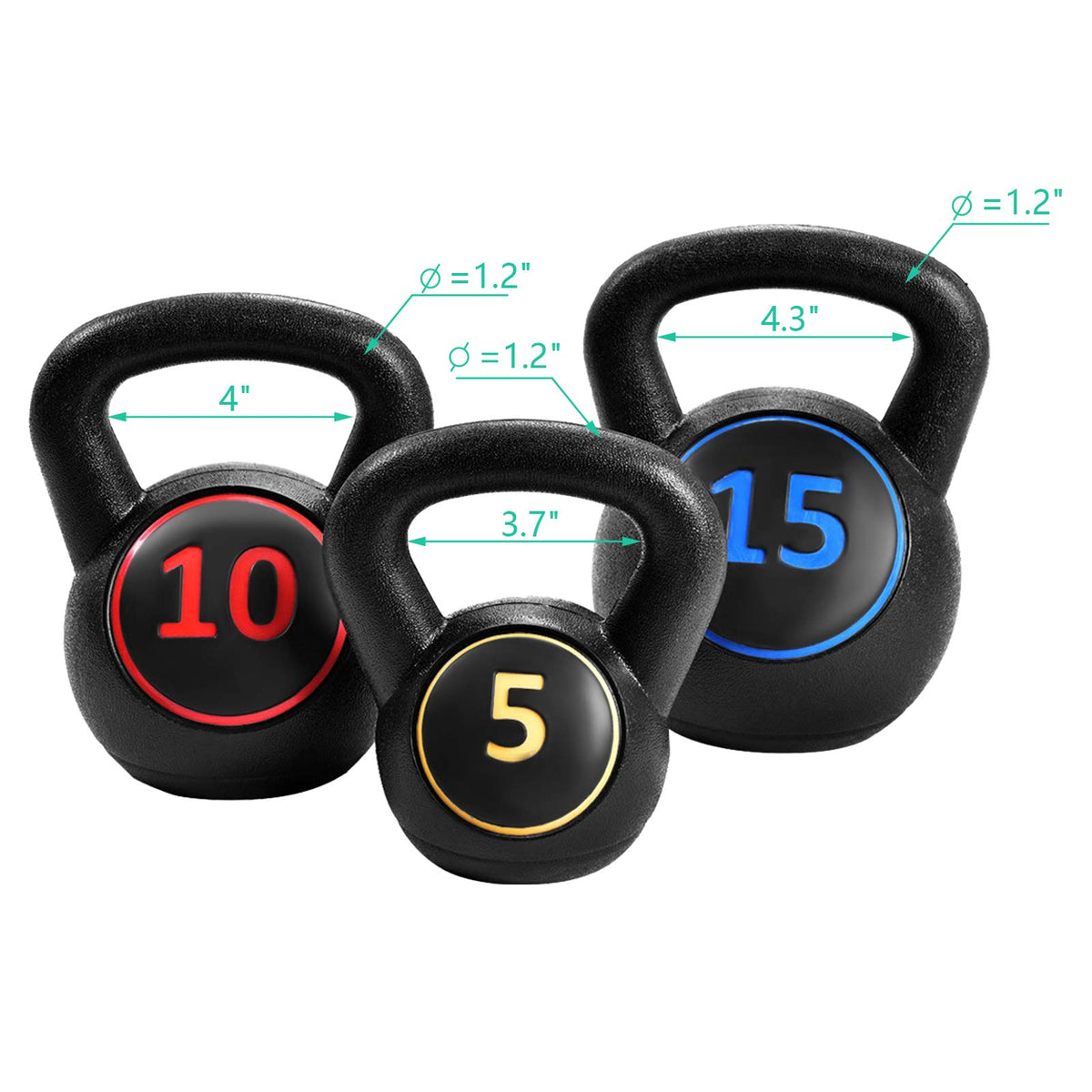 Gymax Kettlebells, 3 Pcs Vinyl Kettlebell Weights Set Weights 5, 10, 15 lbs Set