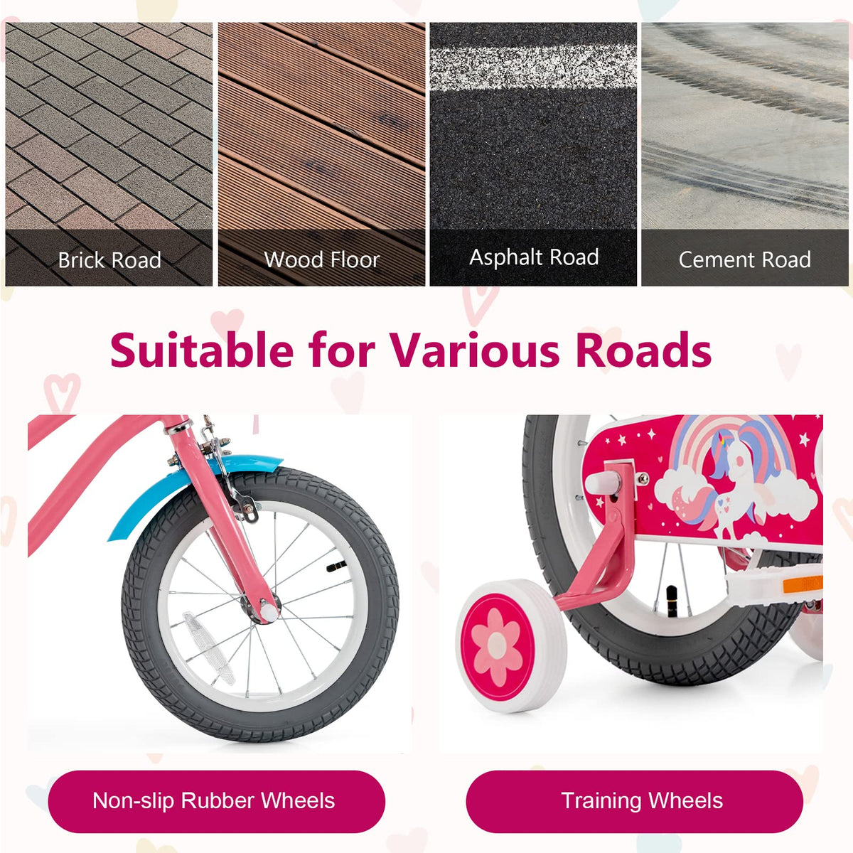 - 【Non-slip Wheels for Different Roads】Featuring 2 non-slip rubber wheels, our kids bike ensure a safe and smooth riding experience on brick road, wood floor, cement road, asphalt road and more. 2 Training wheels are detachable, which offers longer accompany for your kids from bike beginners to small riders.