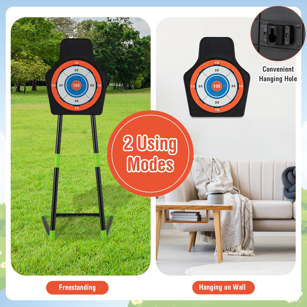 - 2 in 1 Design for Indoor/Outdoor: The target of this youth archery set is freestanding, suitable for outdoor play, as tool-free set-up of the standing target makes it effortless to disassemble and take out. Besides, the target can also be used alone, hanging on wall at home.A arrow bag is also included, helping to organize all 20 arrows and take out.