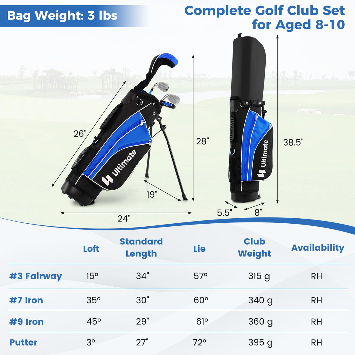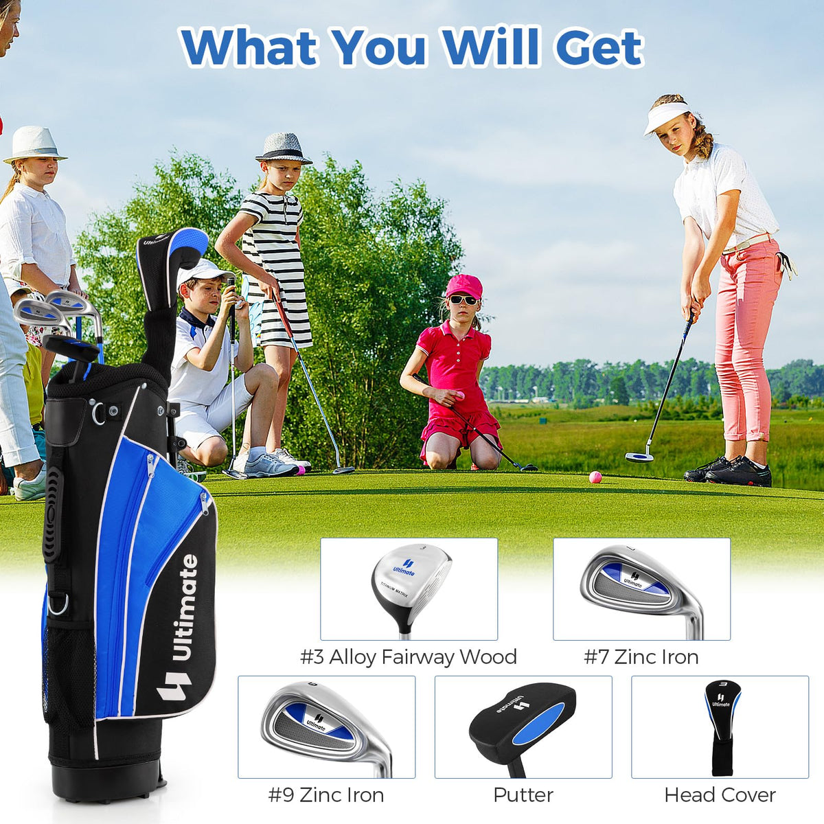- Great Complete Golf Set for Kids: The junior golf complete set includes a golf stand bag, 4 clubs (#3 fairway wood club, #7 & #9 Irons, and a putter) as well as a head cover, which is specially designed for kids and letting them grow a hobby that they will love for life.