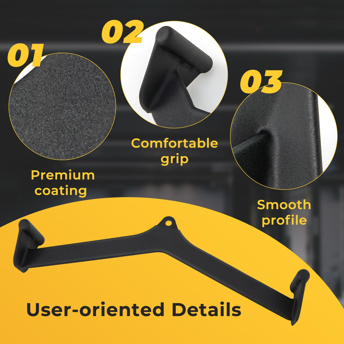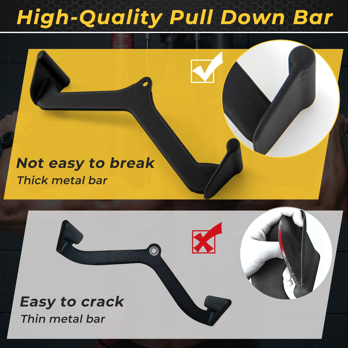 - Innovative Grip: The lat pull-down bar set with V-shaped handles provides secure and easy grips while reducing strain on your wrists. Furthermore, the plastic-coated handles ensure sturdy and comfortable grips, preventing slipping.