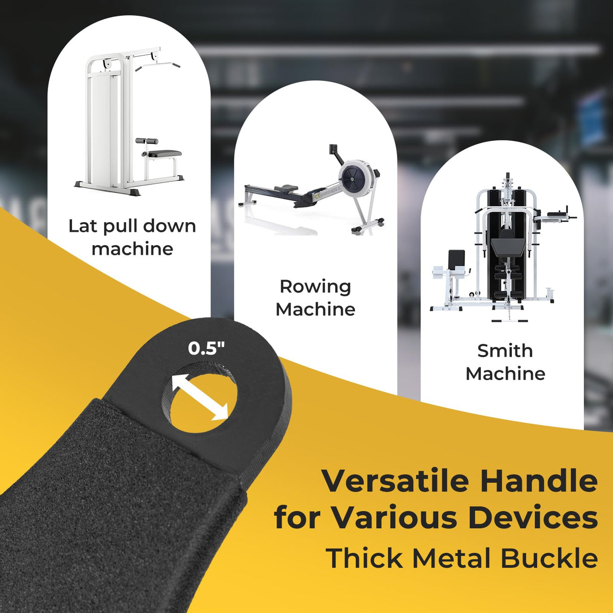 - Multi-Strength Equipment Applications: Compatible with various gym devices such as lat pull down machine, rowing machine, and smith machine, this versatile pull down handle is designed for versatile strength training. In addition, the thick metal buckle makes it easy to attach the handle to any fitness equipment.