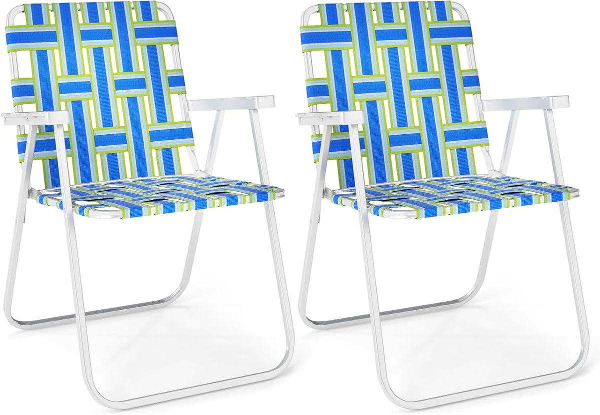 Our folding beach chairs set up in seconds with no tools needed. Light enough to carry at just 7 pounds yet strong enough to hold 330 pounds, they combine portability with durability. The breathable PE straps keep you cool while drying quickly after water splashes, while the tilting backrest and wide armrests improve your comfort. Perfect for beach days, picnics or backyard gatherings, our webbed beach chairs make outdoor living effortless!