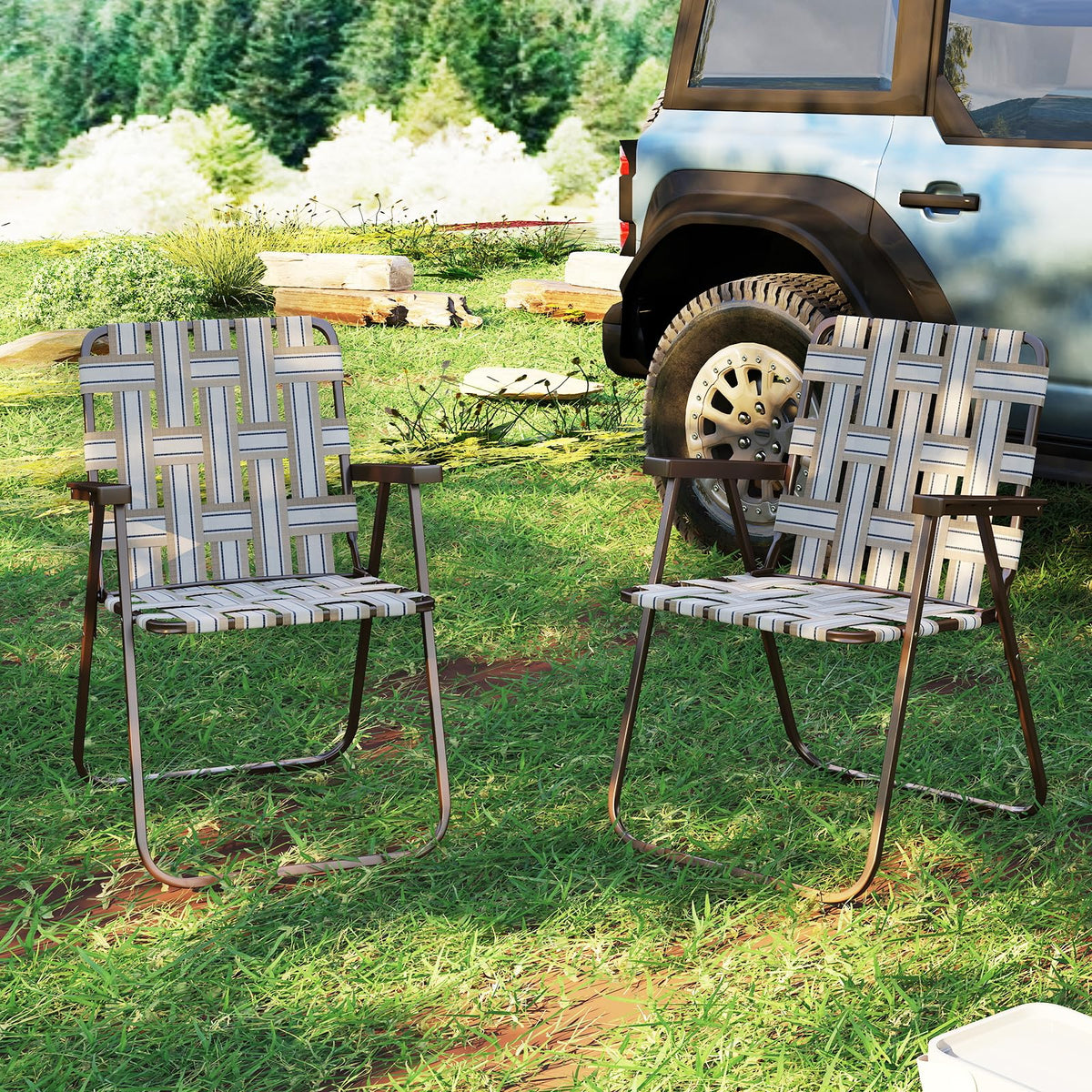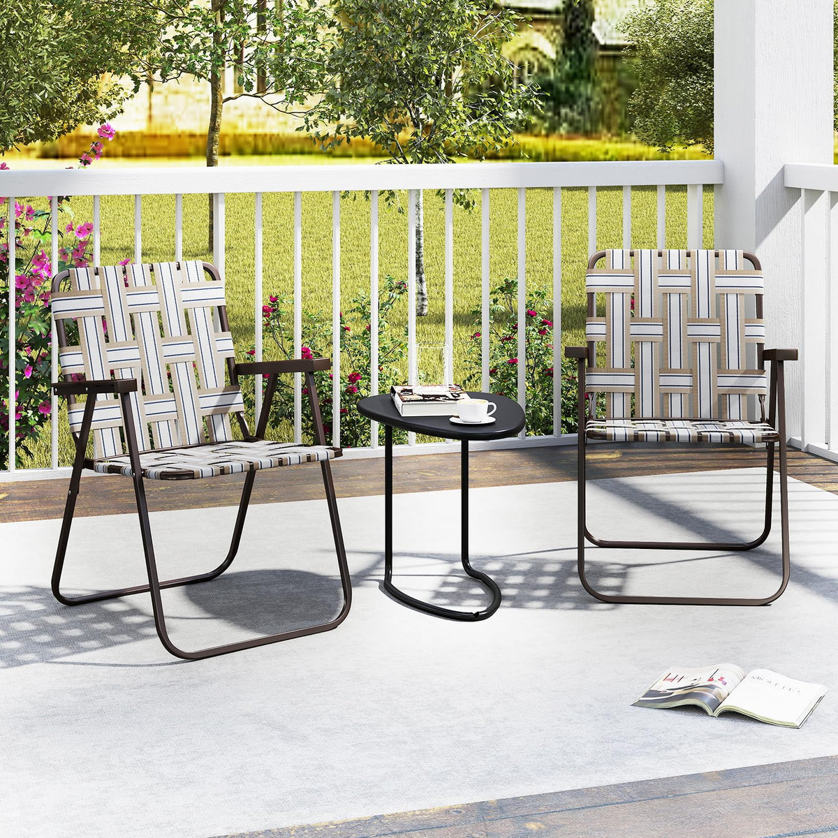 GYMAX Lawn Chair Folding Webbed Beach Lounge Chairs Set with Highback