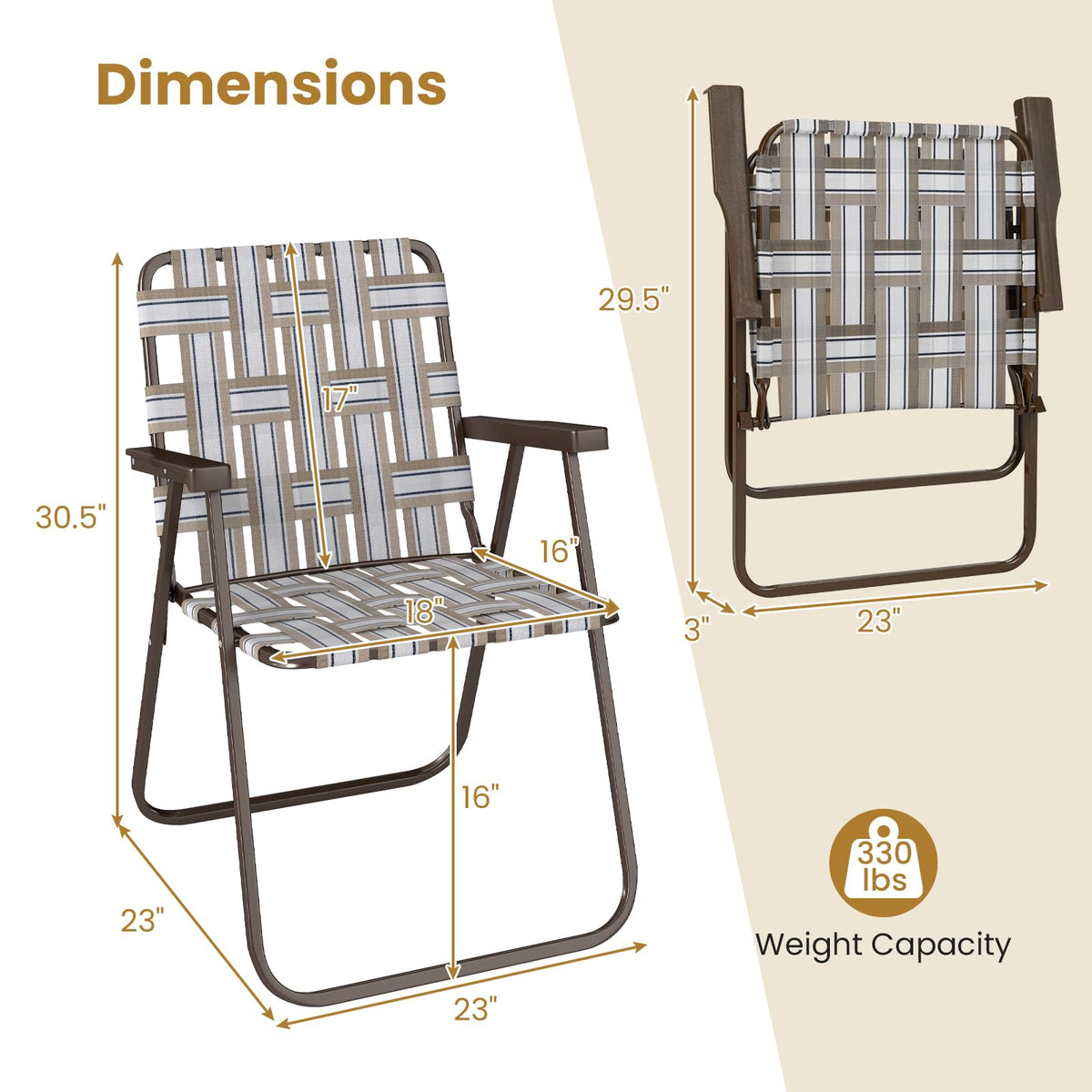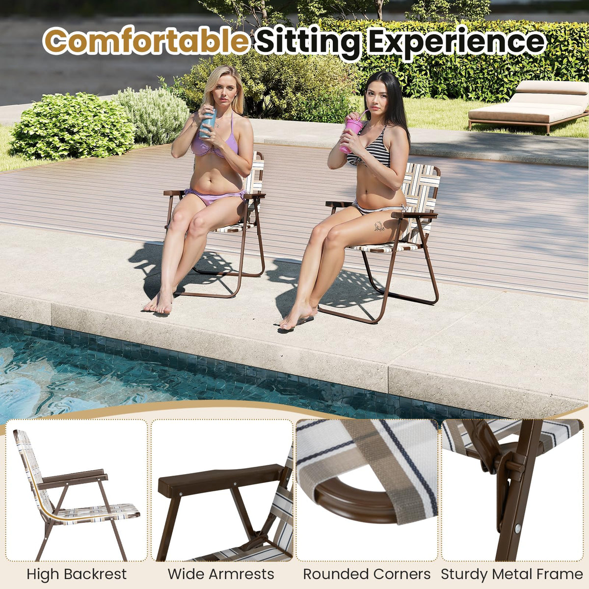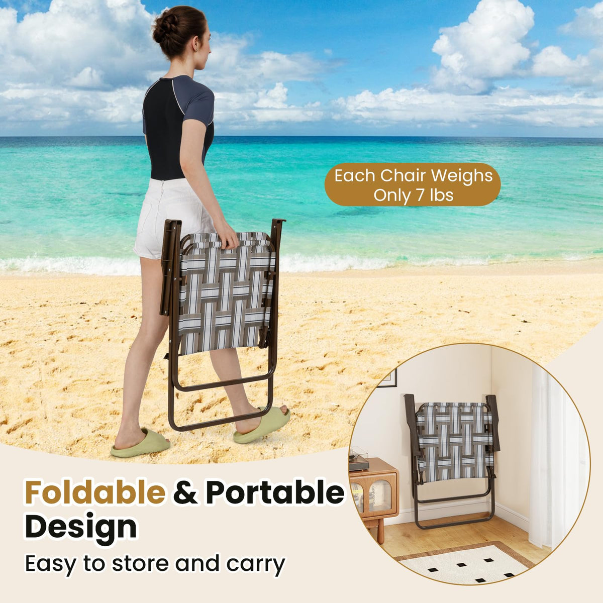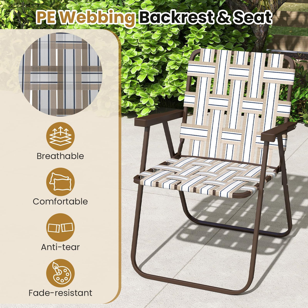 Enjoy instant comfort anywhere with our easy-to-use webbed beach chairs!