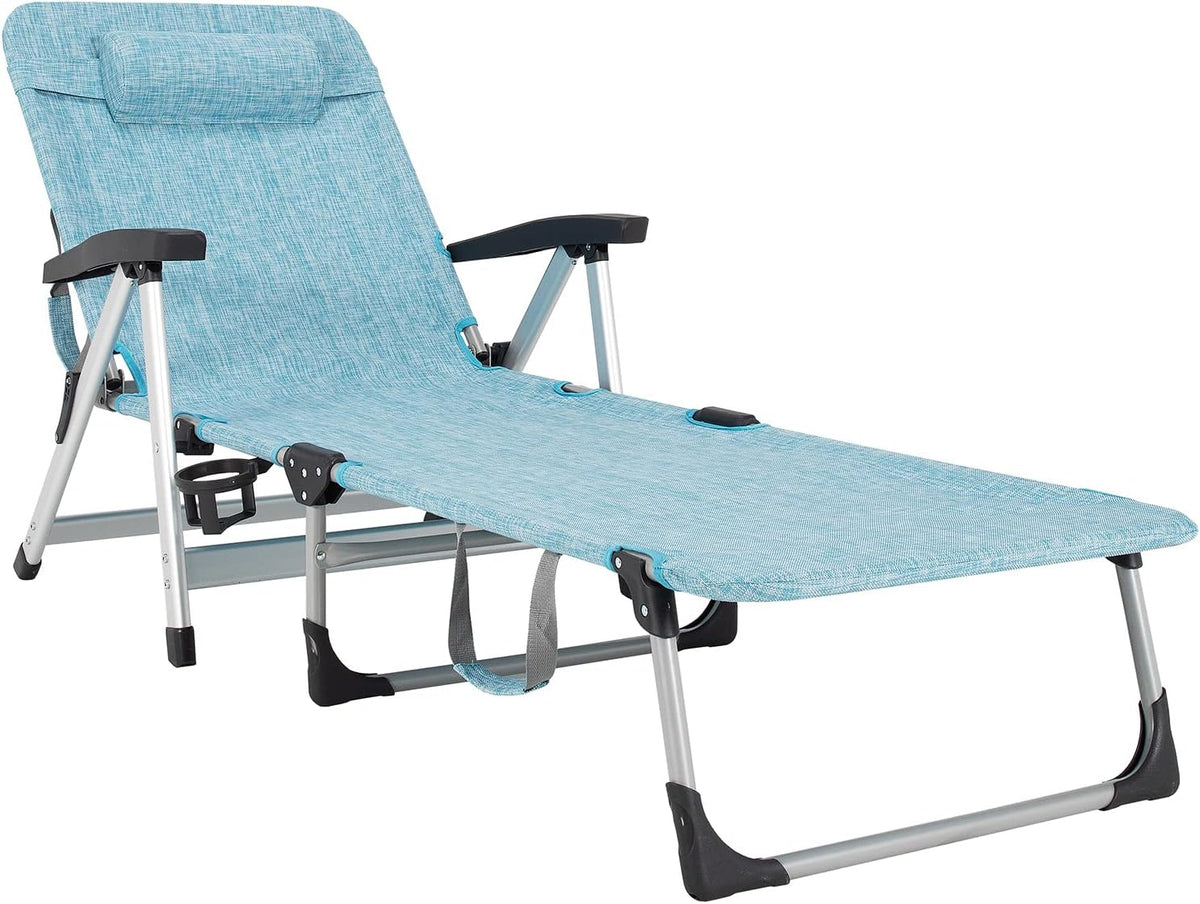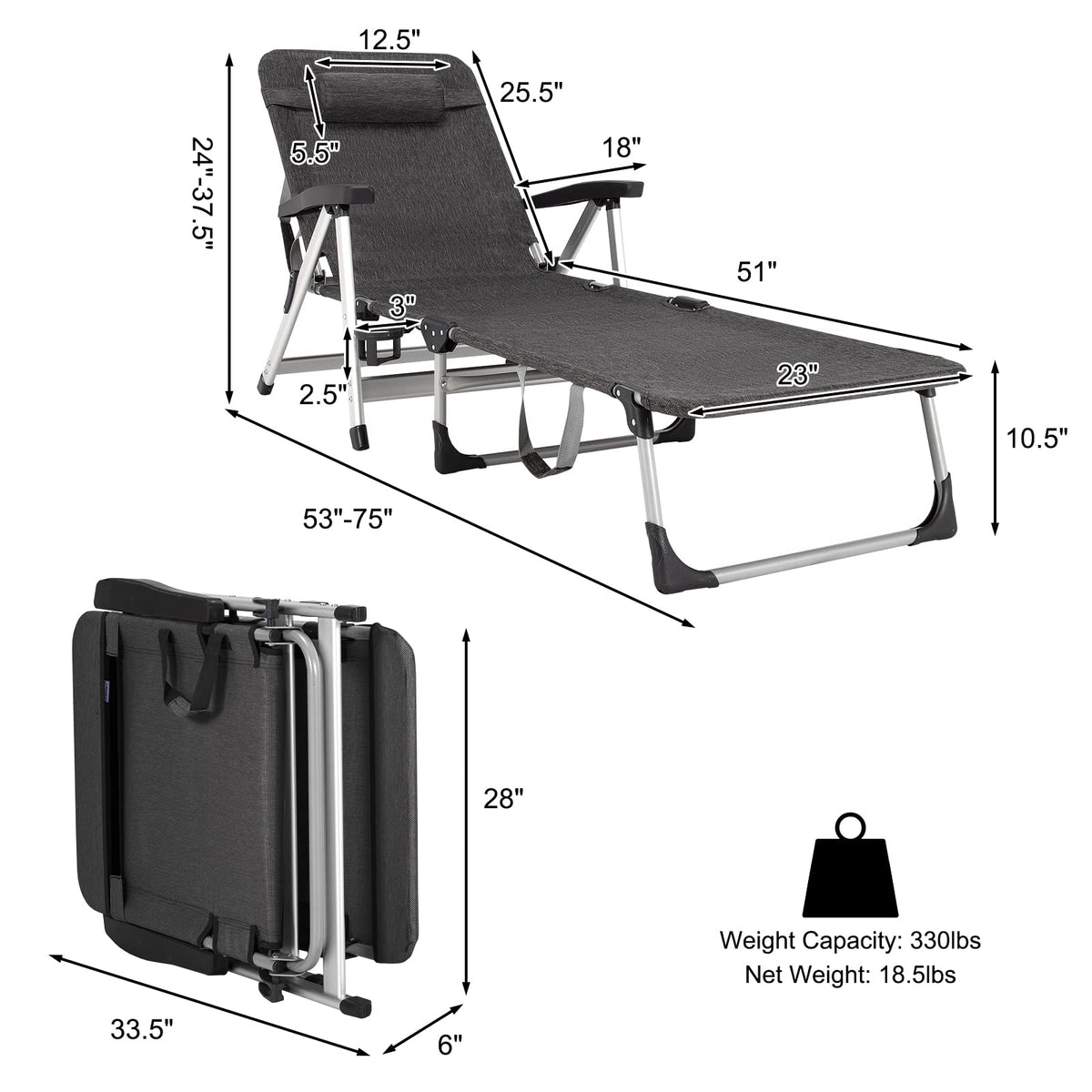 GYMAX Lounge Chair Outdoor, Chaise Lounger w/Adjustable Backrest, Cup Holder & Carry Handle, Folding Portable Tanning Layout Chair