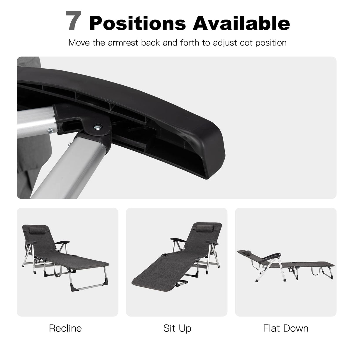 - 7-Position Adjustable Lounger: Moving the armrests back and forth,you can relax on this 7-position chaise lounge for different purpose. Meanwhile, the footrest is also adjustable, offering more choices.