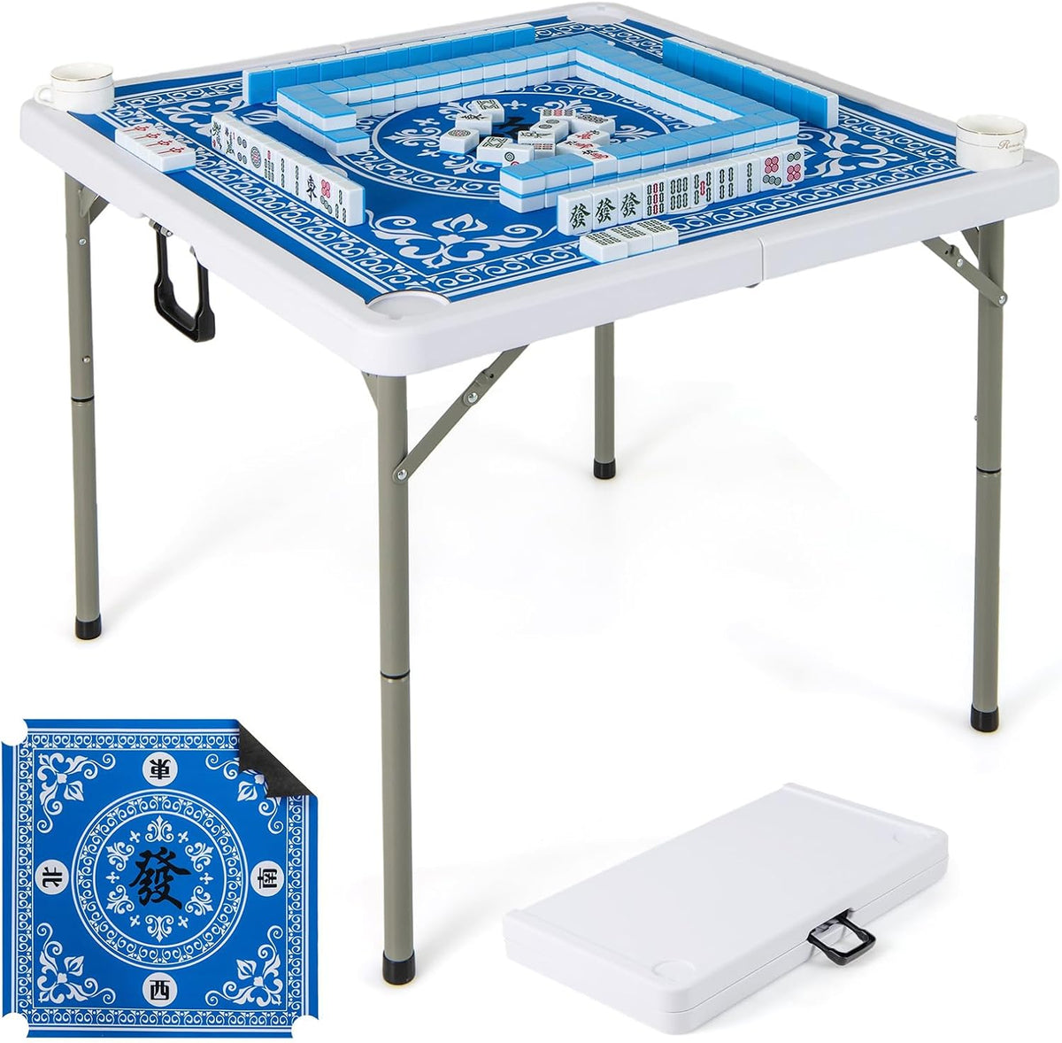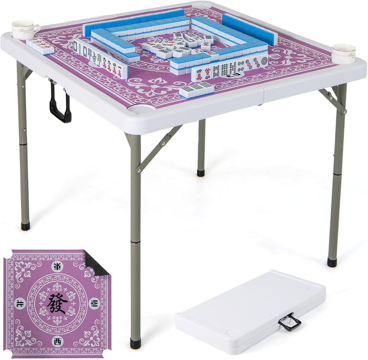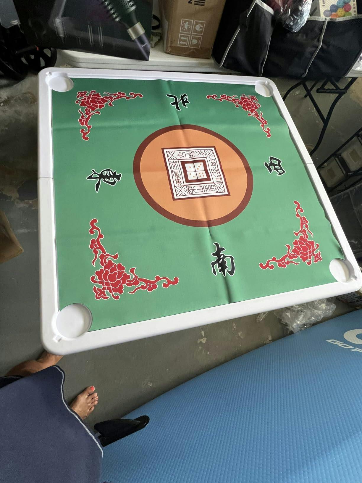 - Easy Setup & Folding Design: This mahjong table is simple to set up. Just unfold the frame and legs, install the supporting legs, and place the game mat. When not in use, unlock to fold for compact storage. The portable folding design with a bui