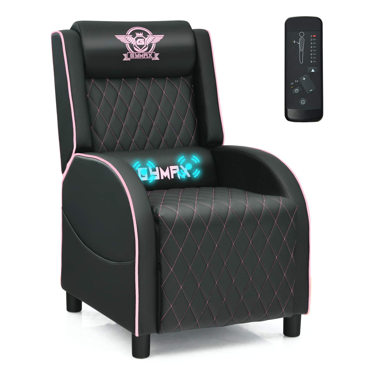 GYMAX Massage Gaming Recliner Chair, Ergonomic Racing Style Single Sofa with Adjustable Headrest
