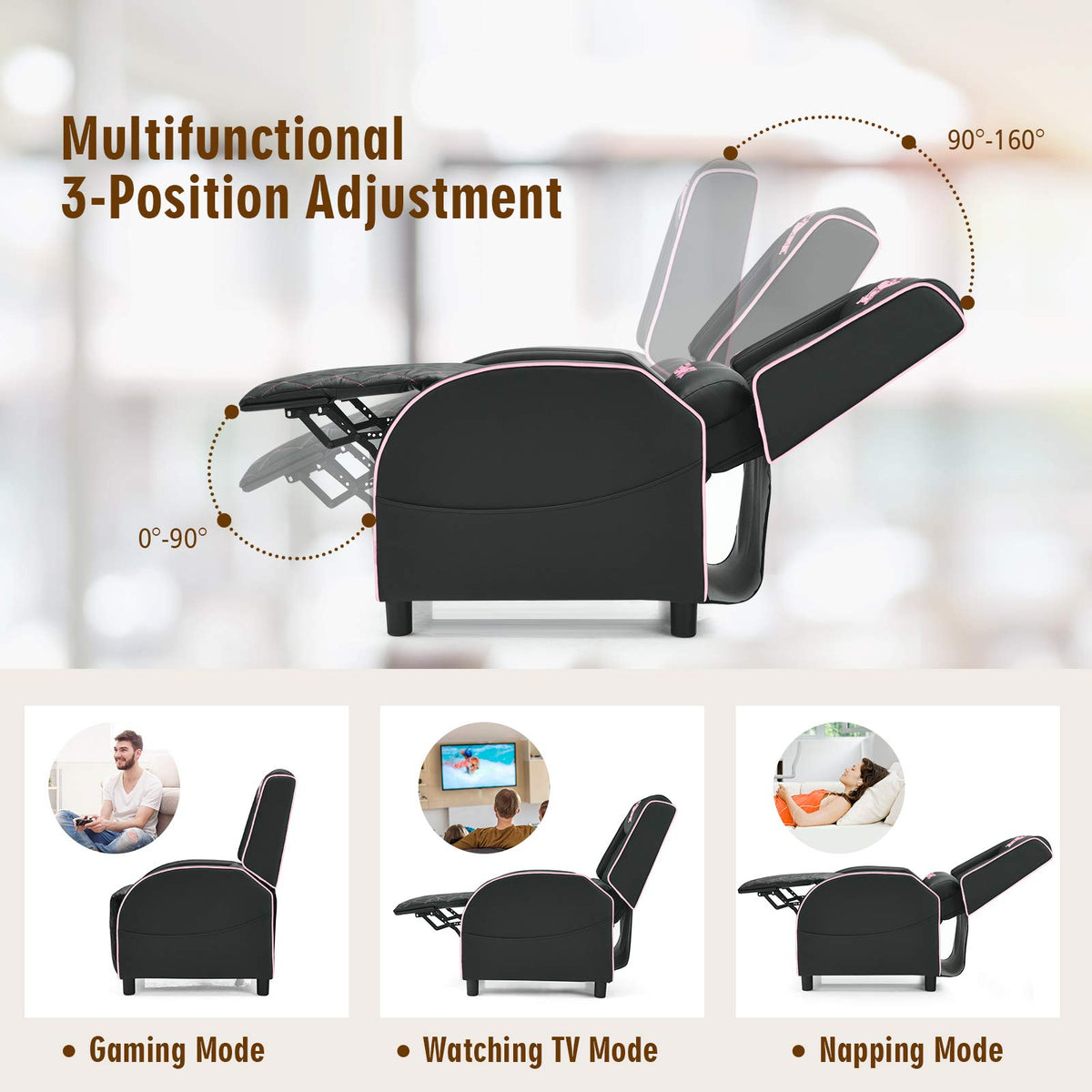 - 【Ergonomic Design】This gaming recliner sofa has thickened headrest and lumbar support, fitting human body curve. It also has 3-level (90°, 120°, 160°) adjustable backrest and footrest to meet your different choice. You can always find your best position for reading, gaming, watching and napping.