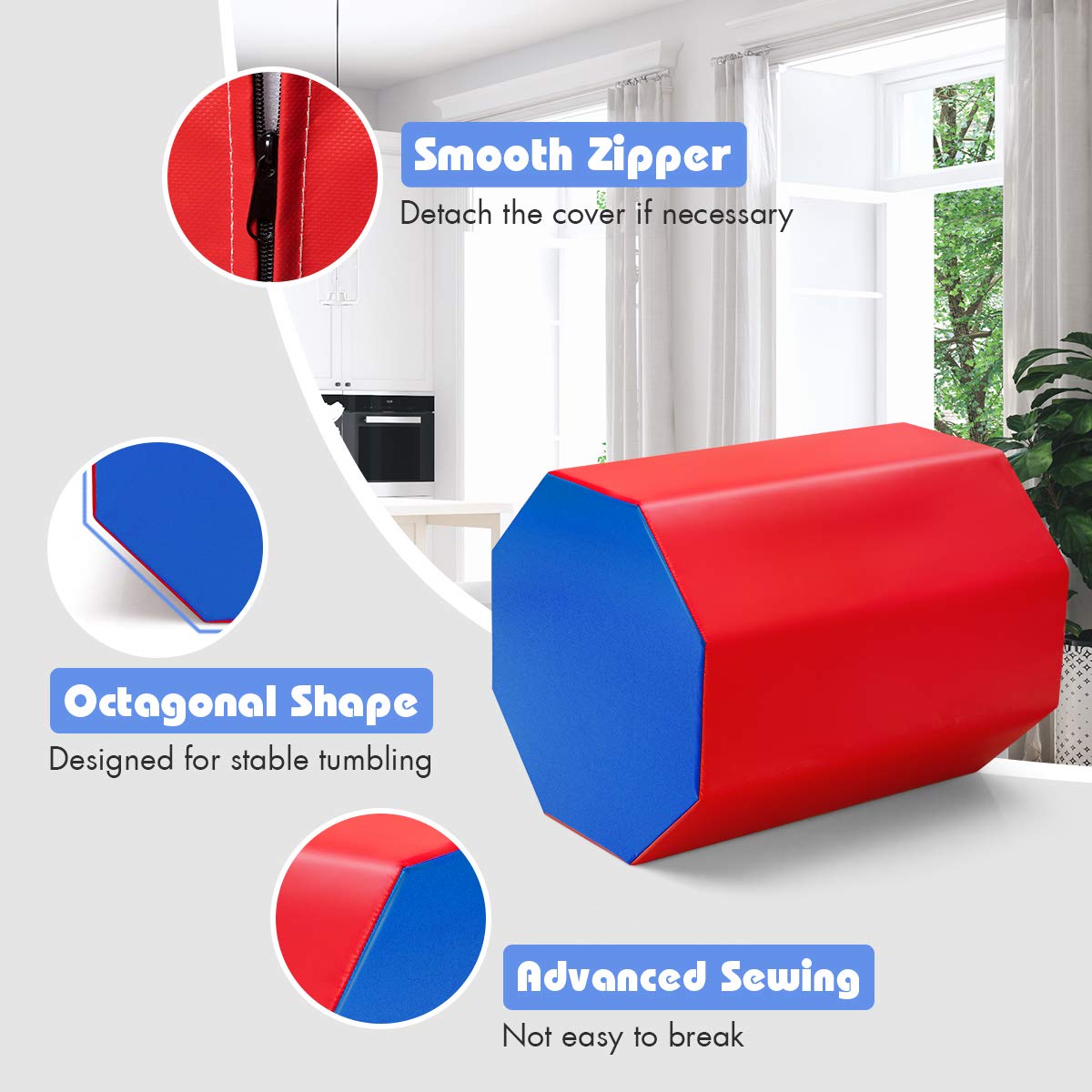 - Octagonal Shape for Tumbling Practice: Compared with other cylindrical tumbling mats, octagonal shape is better in increasing stability without rolling when you are just in preparation on the mat. It will be your good helper to learn tumbling skills such as cartwheel, back handspring, and back tuck.