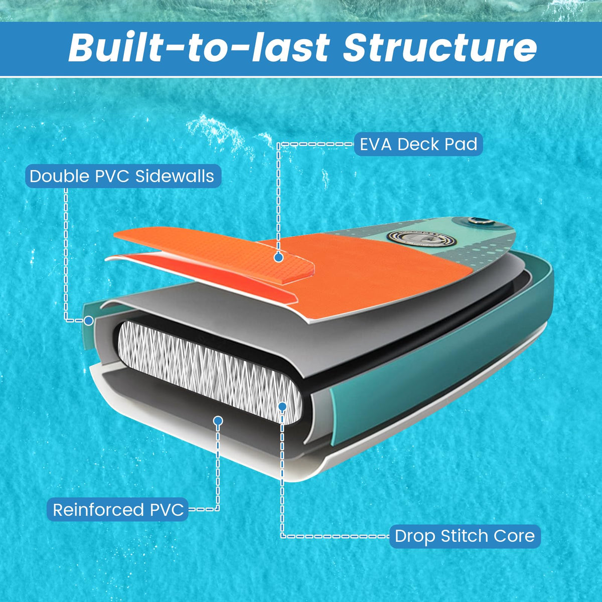 Double PVC sidewalls and drop stitch core offer a high-strength and puncture-proof structure