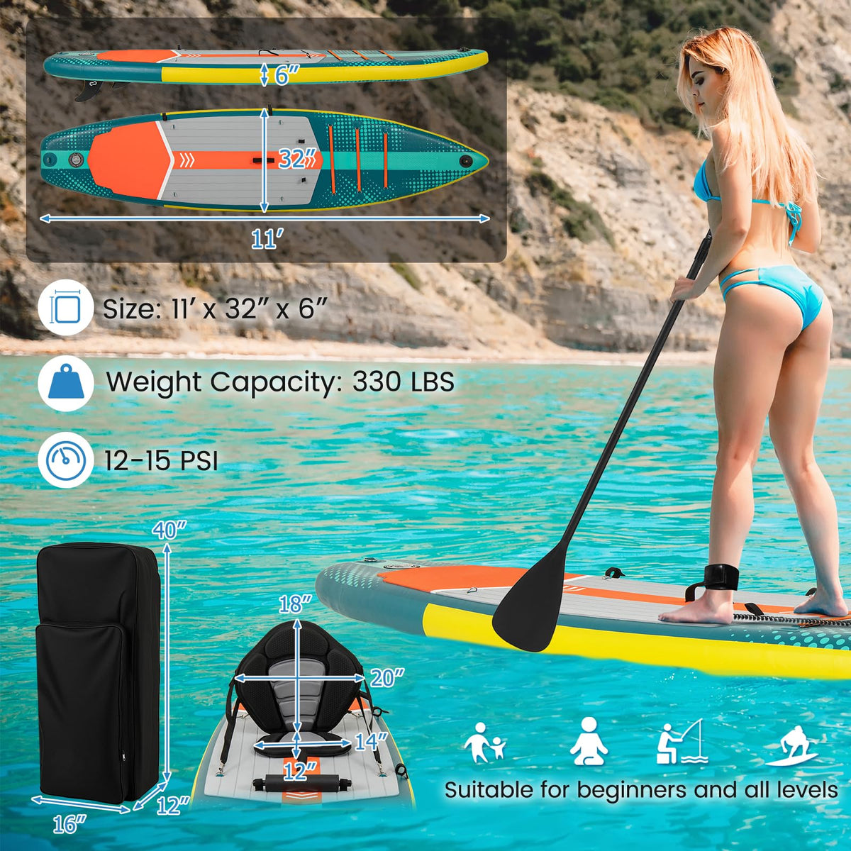 GYMAX Paddle Board Inflatable SUP with Kayak Seat