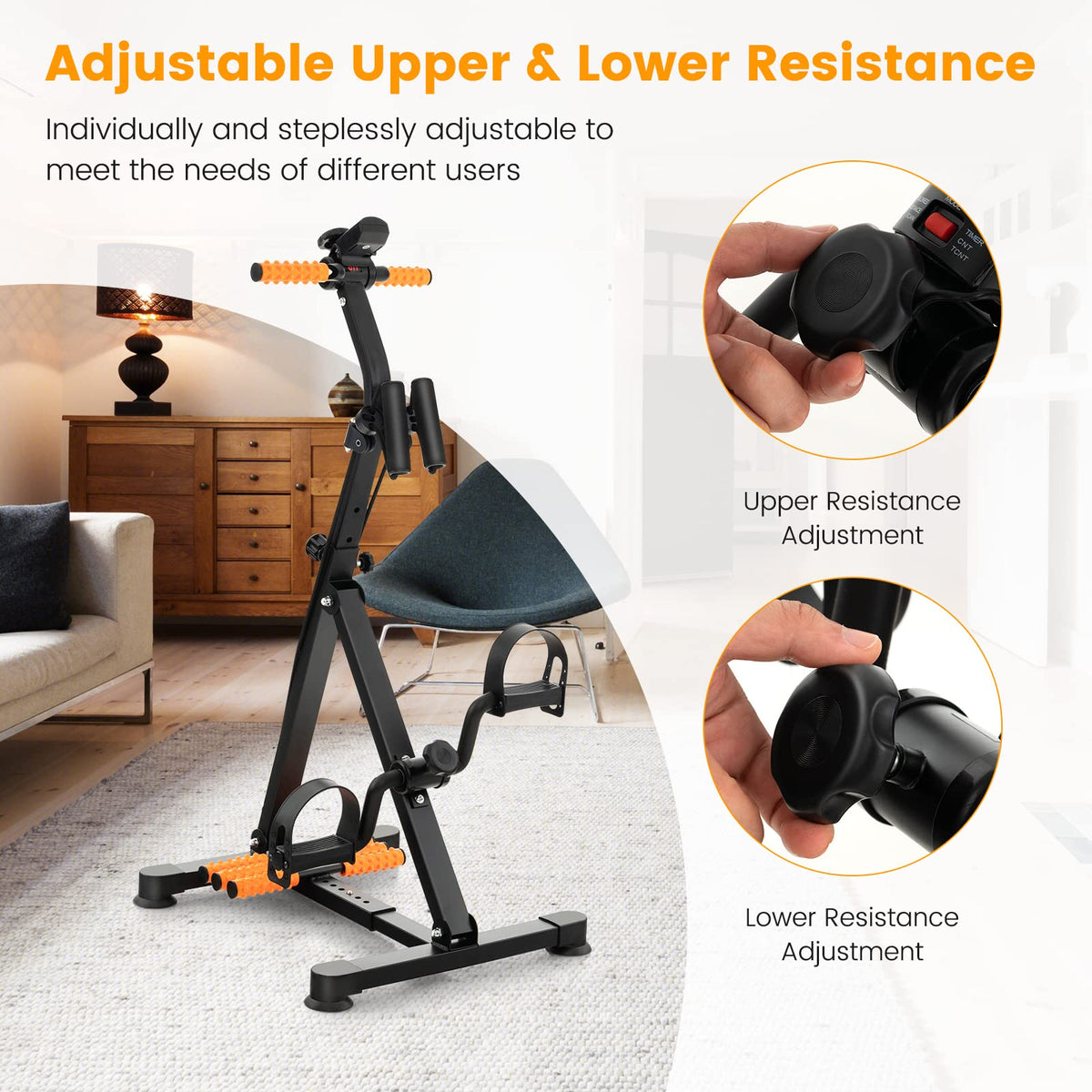 - Flexible Adjustment & 2 Persons Available: Featuring 4-level adjustable height (34.5-39.5 inches), 6-level adjustable length (17-21 inches) and 4-hole pedal strap, this rehab equipment fits to users of different body shapes. Besides, the upper and lower resistances are also adjustable to meet the needs of different users. Pedals and arm stretching work separately, so it can also be used by 2 persons at the same time.