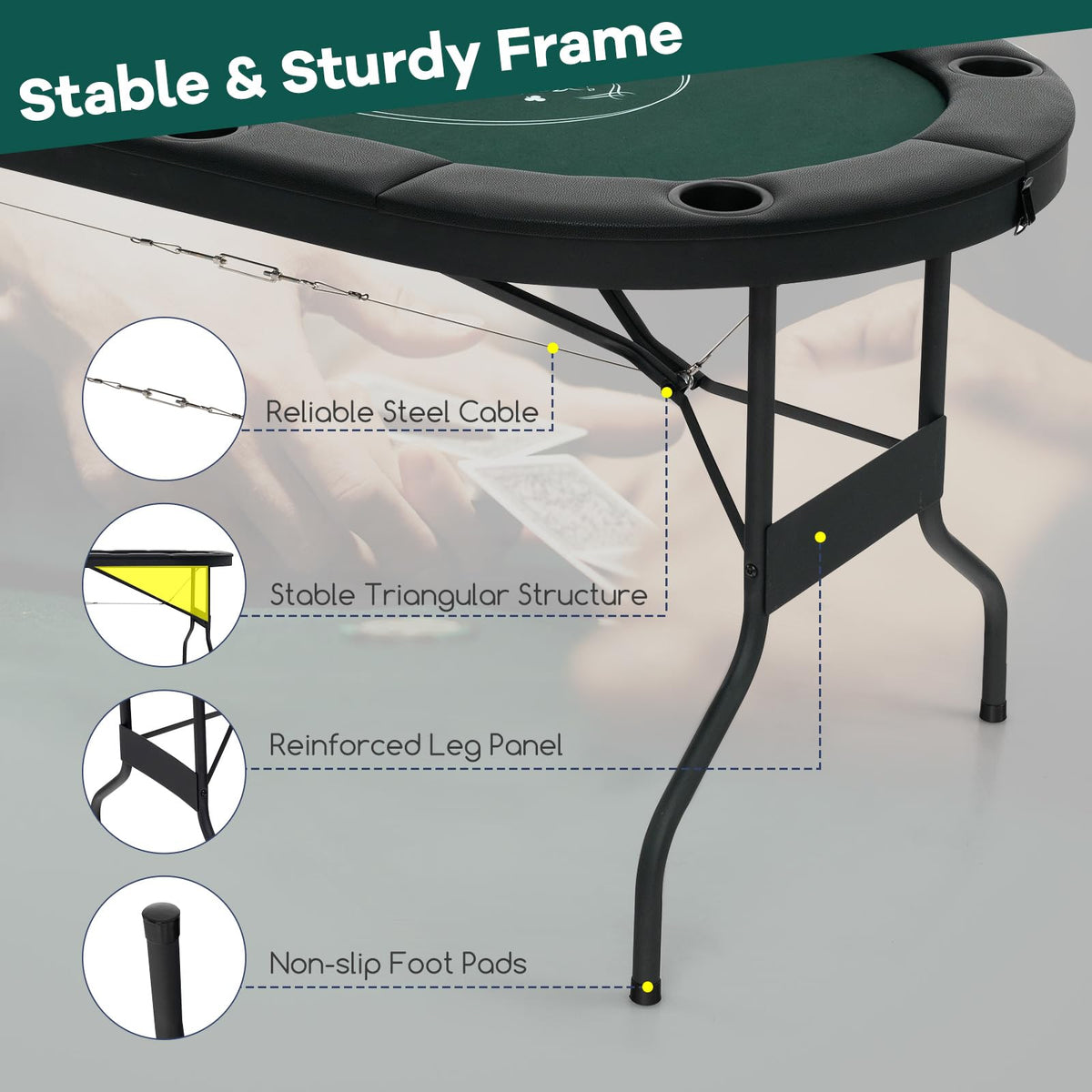 - Stable & Sturdy Frame: This foldable poker table top is constructed with selected metal material and a stable triangular structure, ensuring long time use. Besides, it also comes with reliable steel cables, reinforced leg panels and non-slip foot pads for enhanced stability.