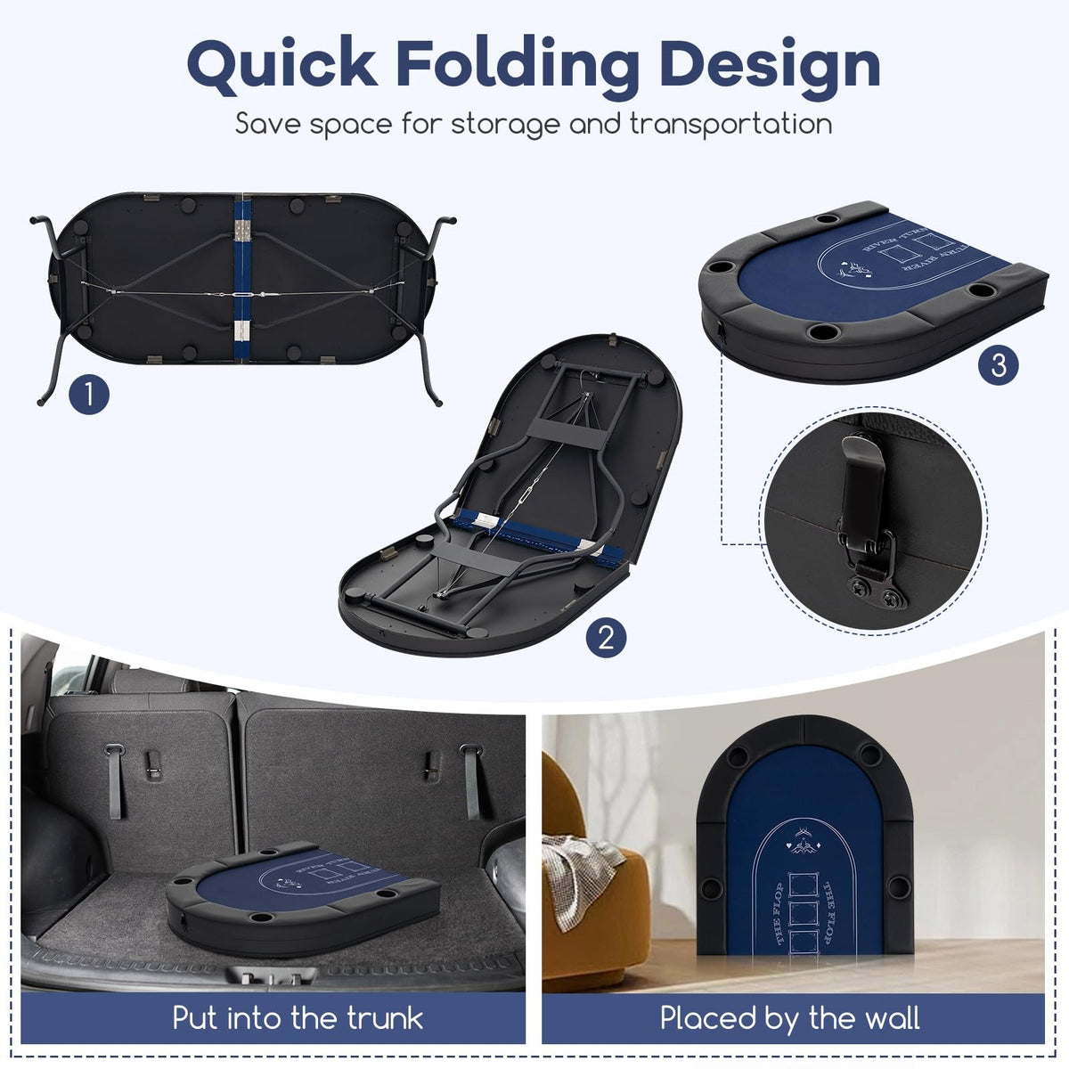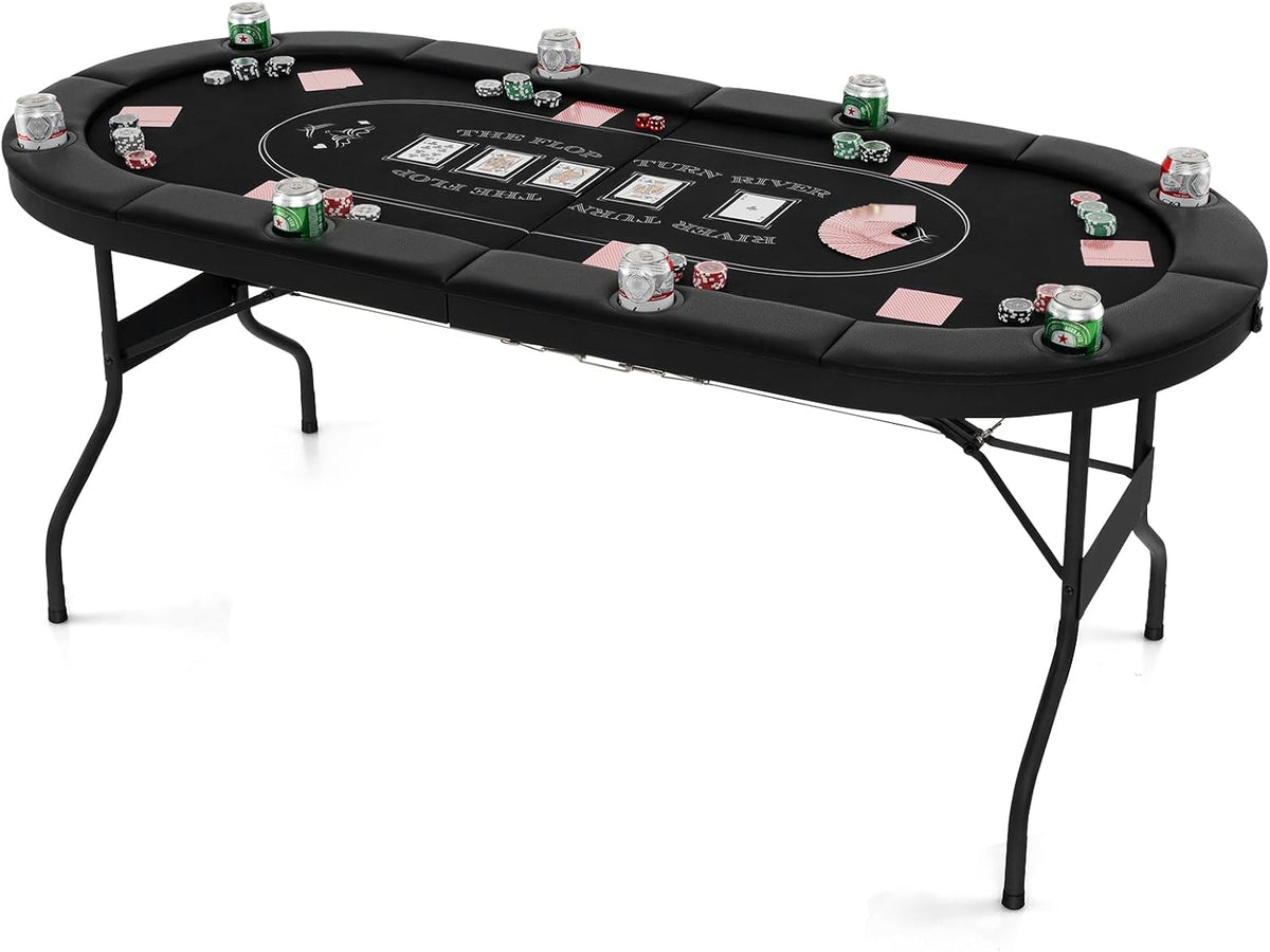 GYMAX Poker Table Foldable 8-Player Texas Holdem with Metal Cup Holders