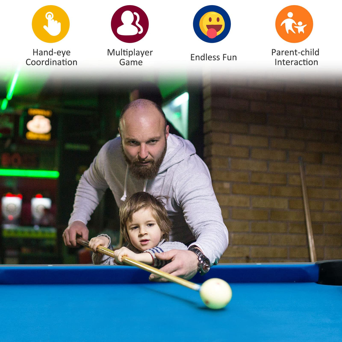 - Safety Lock & Aiming Points: The safety locks secure the table legs and avoids accidental folding while playing. Moreover, the table features 18 aiming points, helping beginners to line up shots.