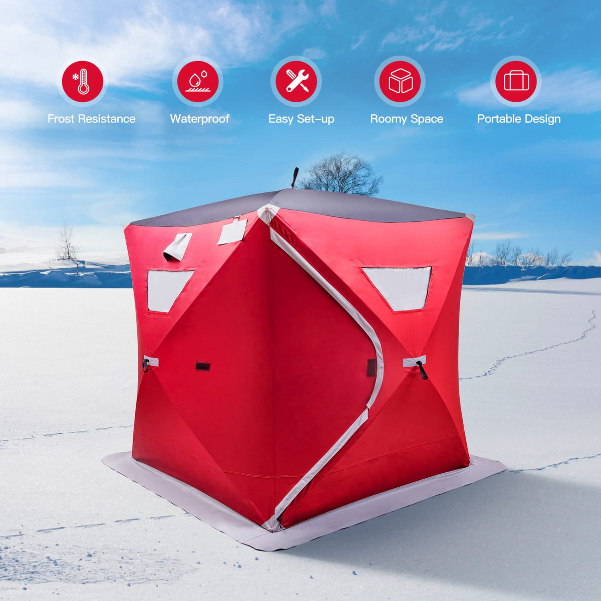 GYMAX Pop-Up Ice Fishing Shelter Waterproof & Windproof Ice Tent
