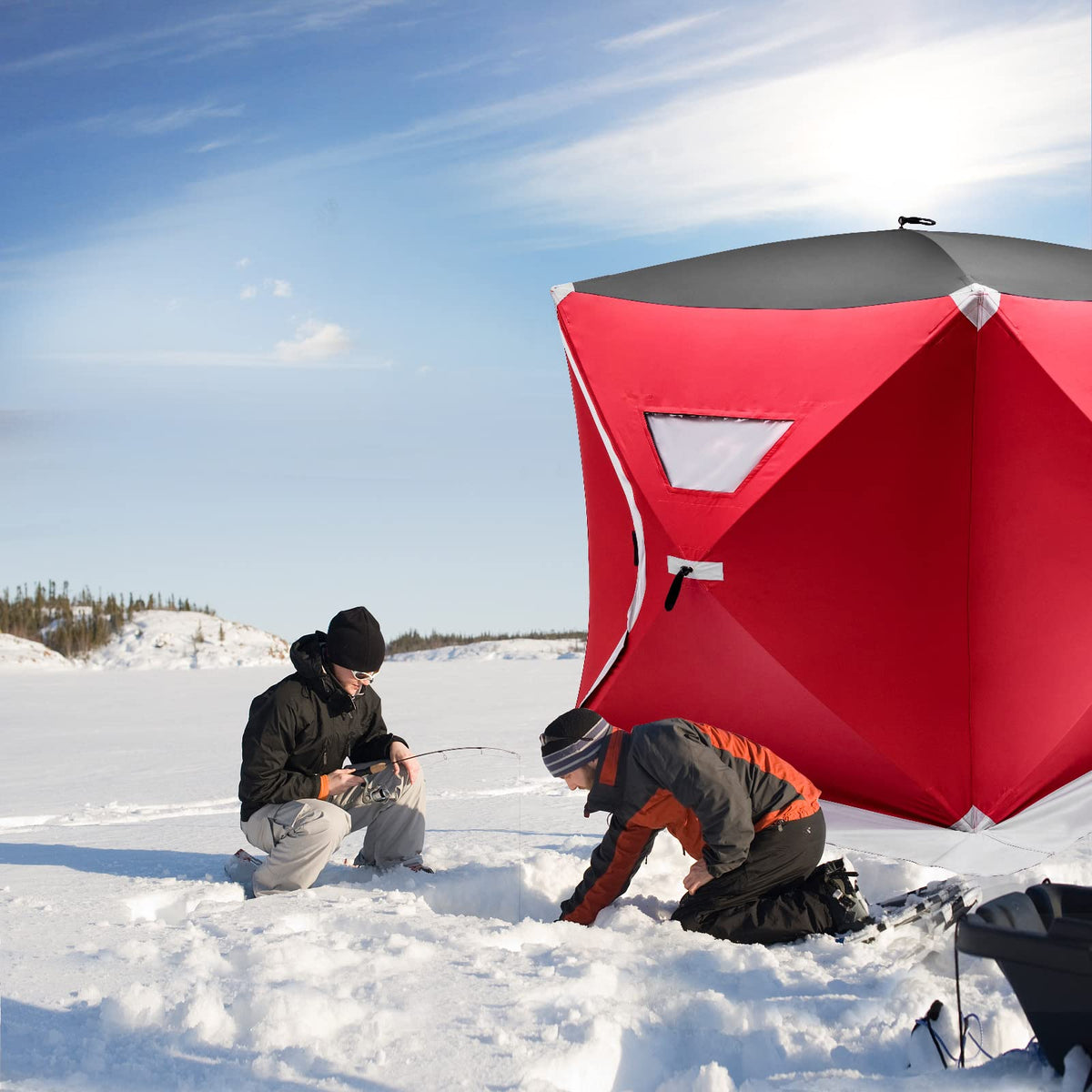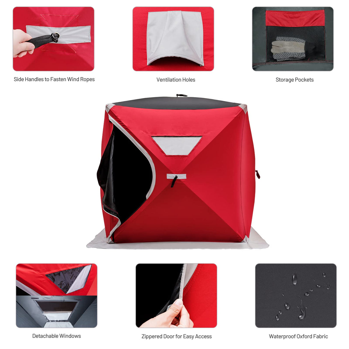 - Durable & Waterproof Material: This ice fishing tent is made from wear-resistant 300d oxford fabric for waterproof fishing experience in any weather. The minus 30℃ frost resistance design keeps cold out, allowing you to enjoy outdoor activities.
