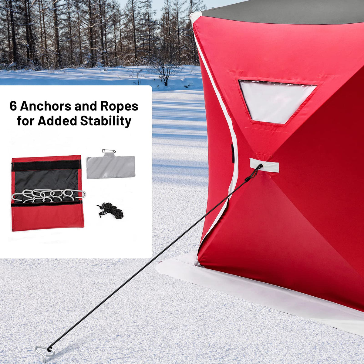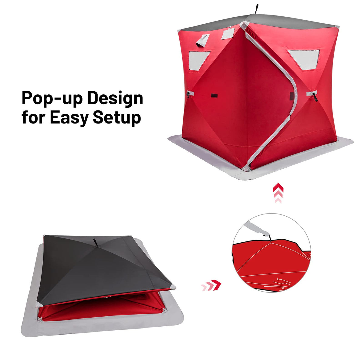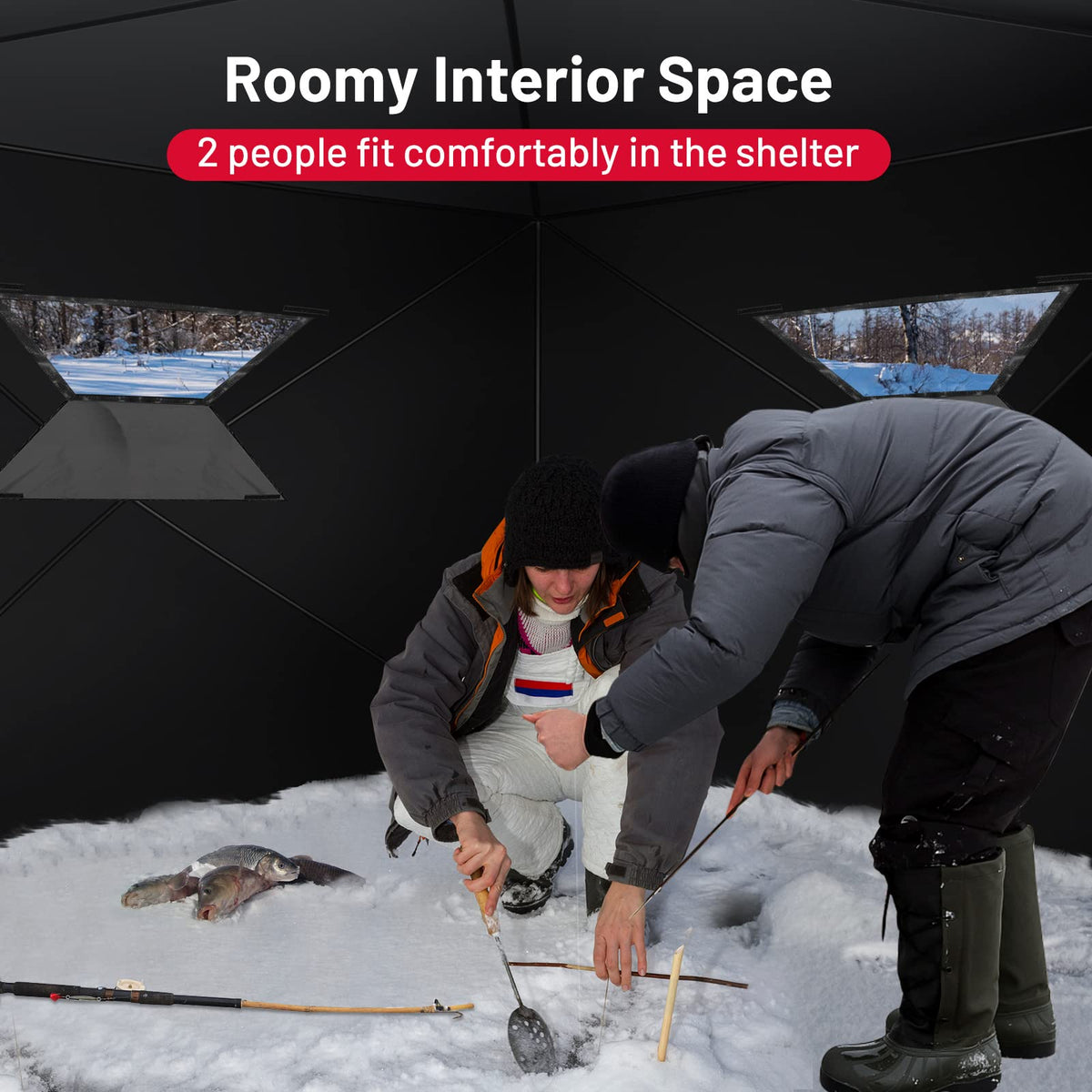 - Quick Set-up & Stable Construction: Pop up design makes this ice tent sets up and breaks down in seconds. The frame is made of solid glass fiber rod and equipped with metal anchors to ensure durability and stability for long last performance.