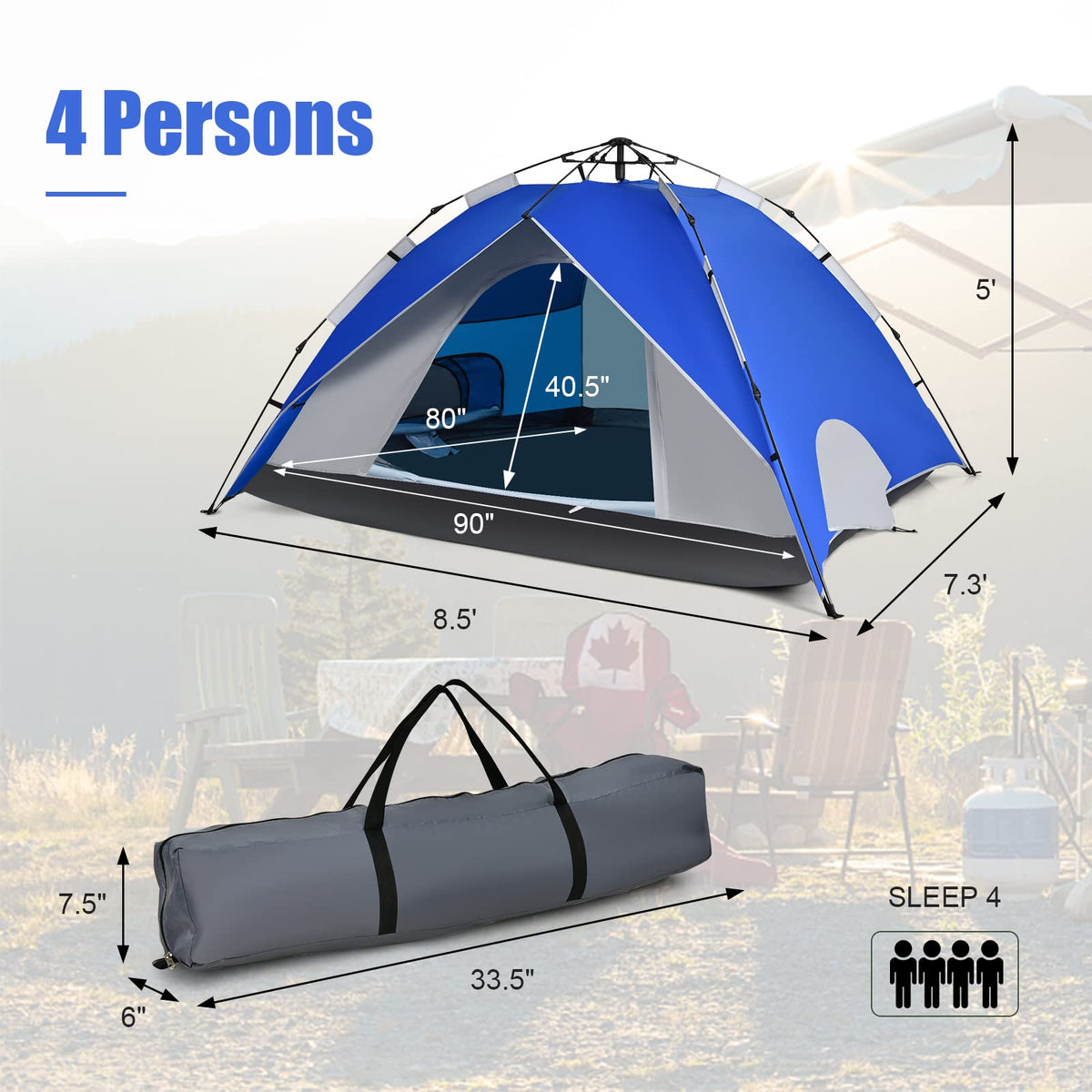 GYMAX Pop Up Tent, 4-Person Portable Instant Camping Tent with Carry Bag & Removable Shelter