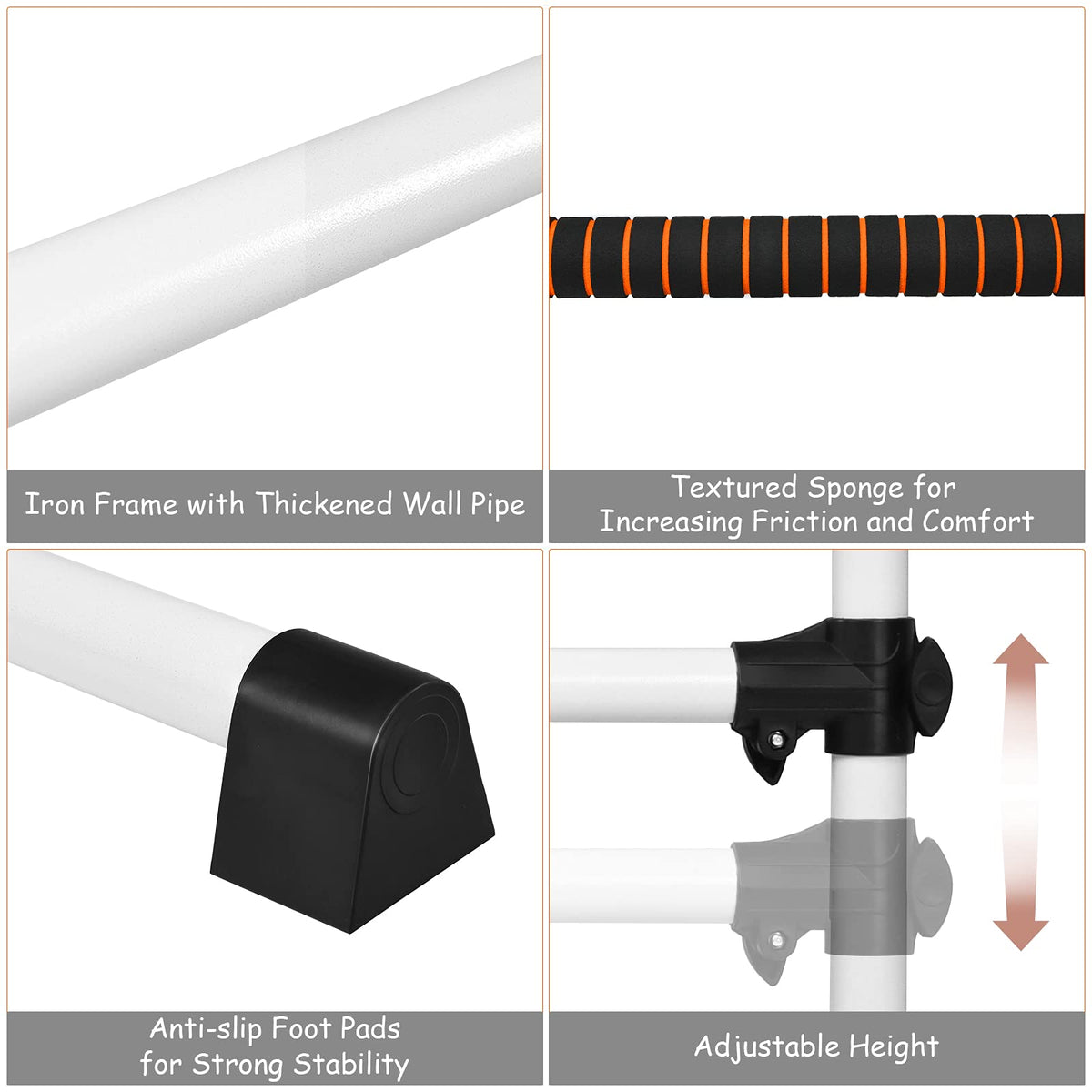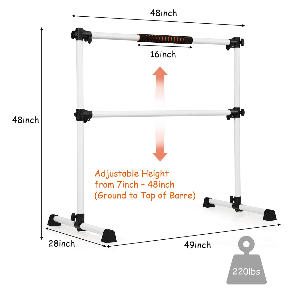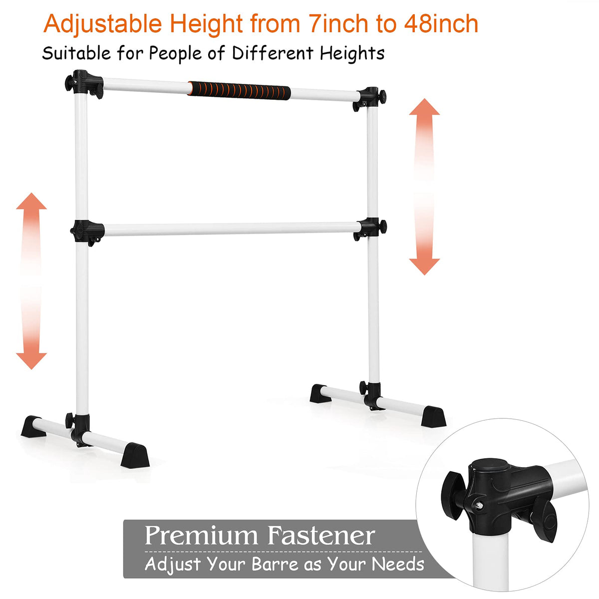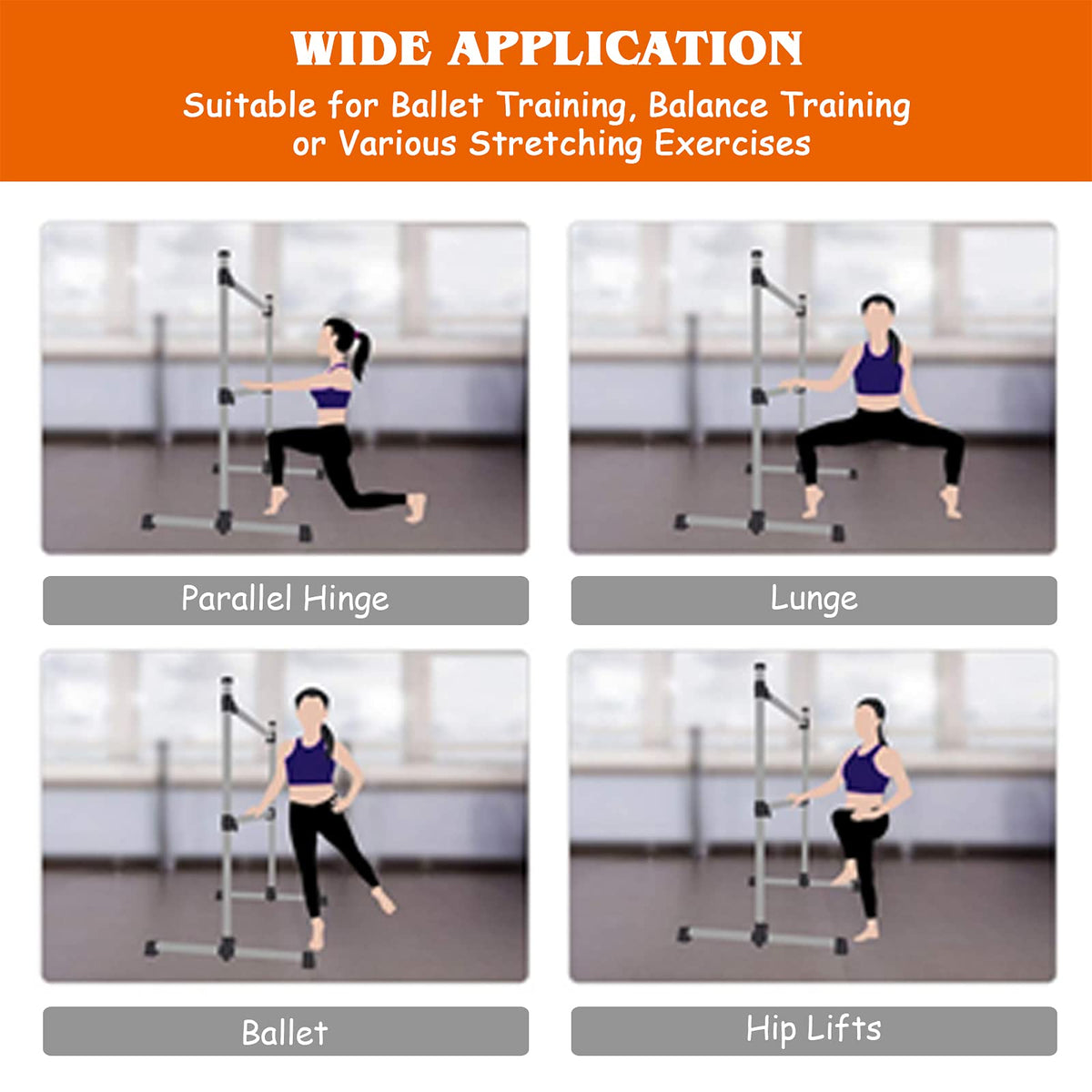 - 【Adjustable Height Freestanding Ballet Barre】This freestanding ballet barre has 6 high quality fasteners for easy adjustment. The middle detachable crossbar can be adjusted from bottom to top 48". No matter ballet workout, balance training or stretching, you can easily adjust the height to meet all your needs.