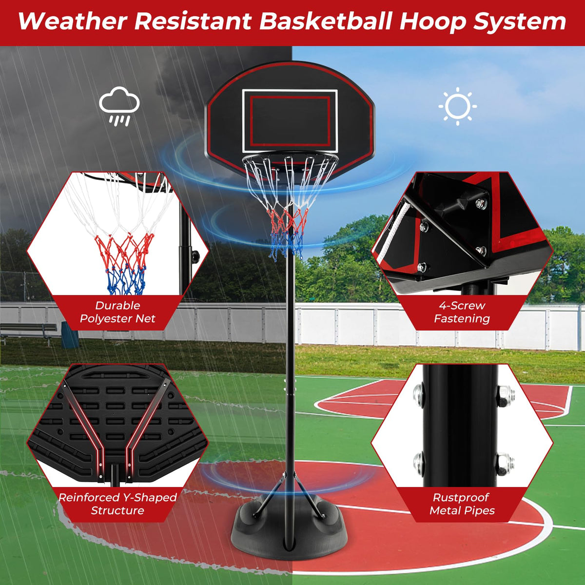 GYMAX Portable Basketball Hoop, 5.5-7.5 FT Height Adjustable Basketball Goal w/Anti-Rust Stand