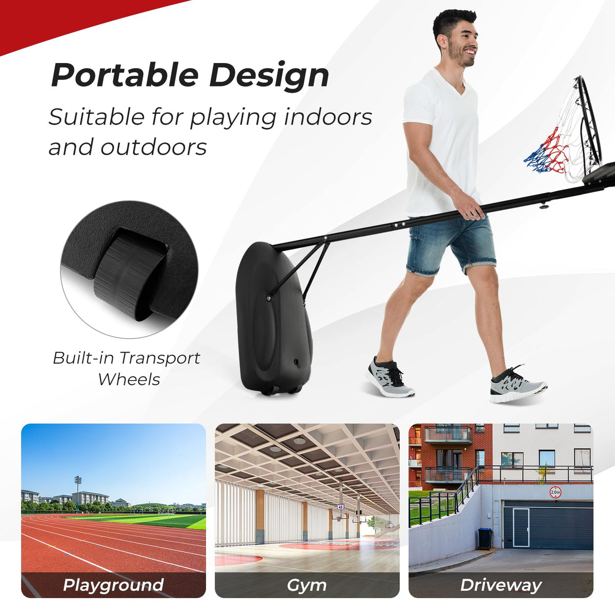- Portable Design for Unlimited Fun: Two transport wheels allow for easy mobility, which makes this basketball hoop suitable for playing indoors and outdoors, such as driveway, backyard, gym, playground, park and more.