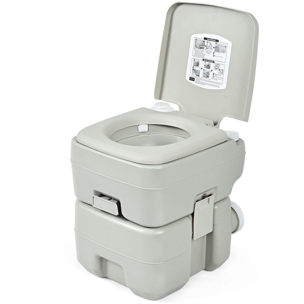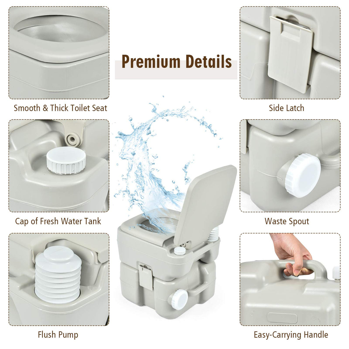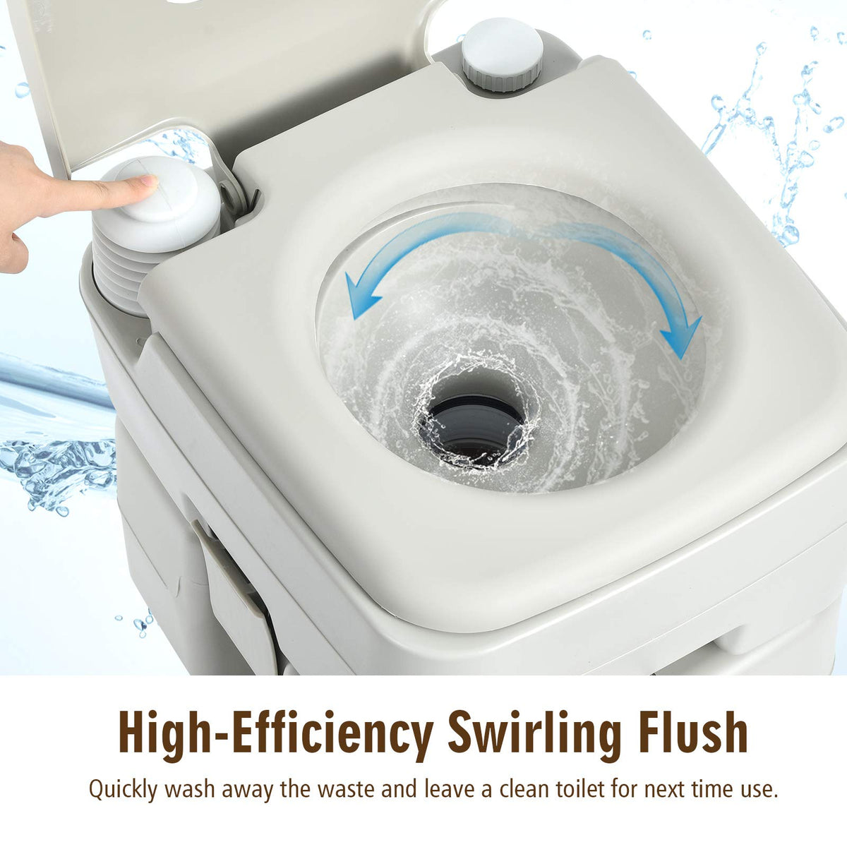 GYMAX Portable Toilet, Porta Potty RV Toilet with 5.3 Gallon Waste Tank & Flush Pump