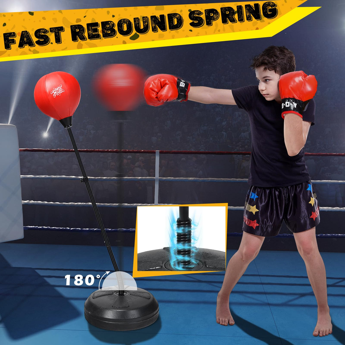 - Quality Materials for Better Use: The high-strength PE & PVC surface makes the ball endure many times of hitting. And the heavy-duty metal pipes withstand the test of time. Additionally, the 180° fast rebound spring enables children to focus on boxing exercise without disturbing.