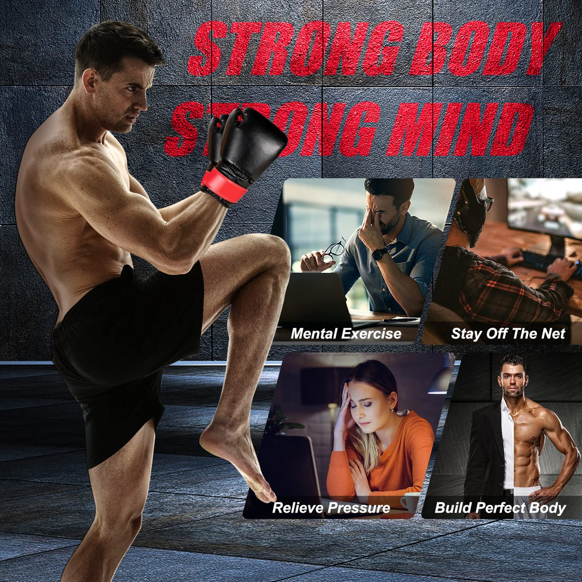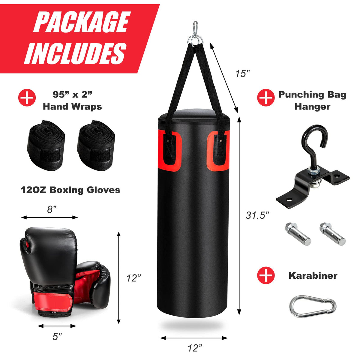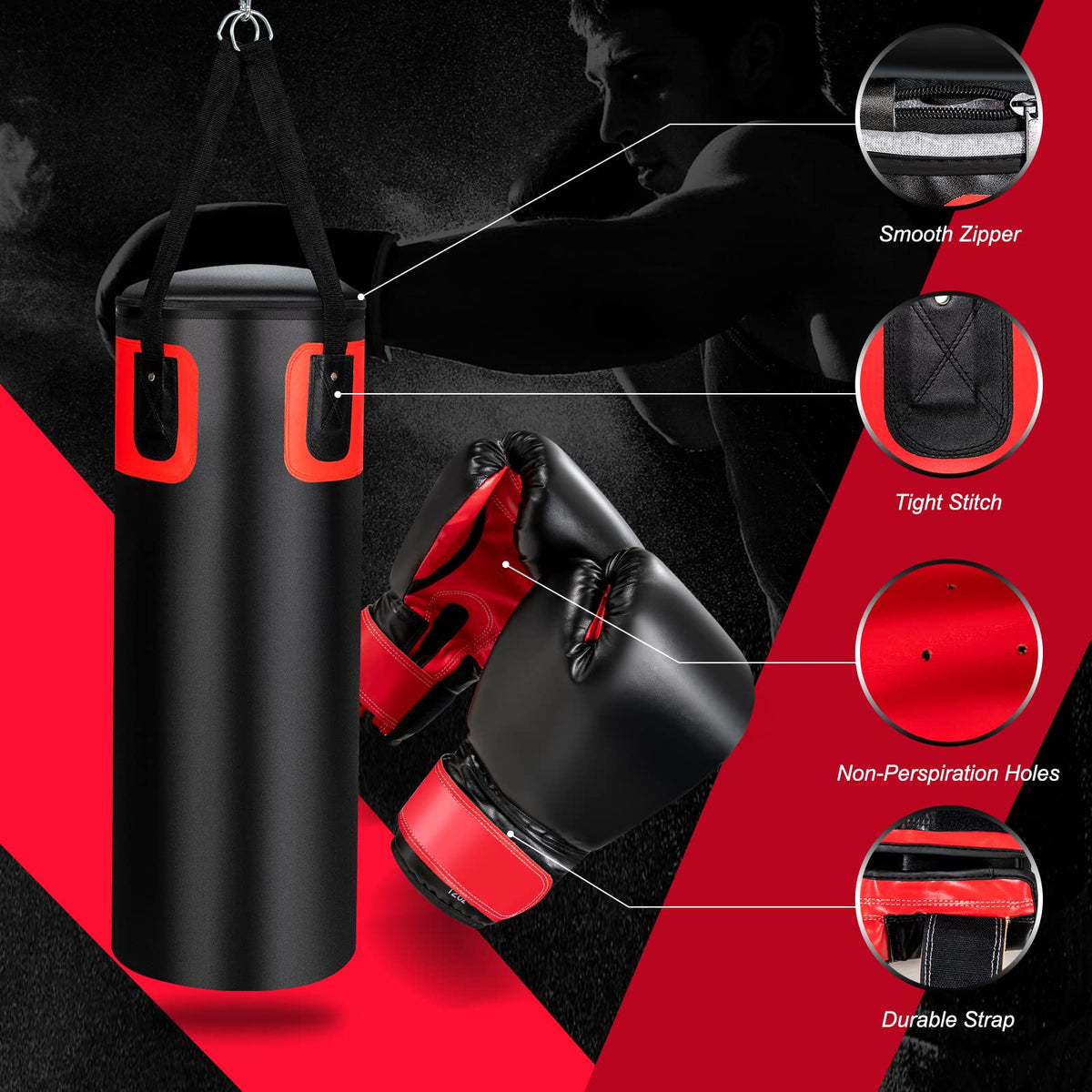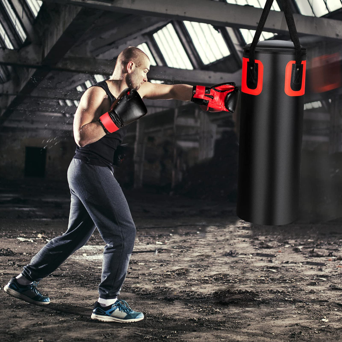 - Considerate Hand Protection: The punching bag set comes with a pair of 12OZ punching mitts and two 95" hand wraps, both of which will provide professional hand protection. The punching gloves with ventilated holes and thickened padding offer you extra comfort. And the long strap with hook and loop fastener allows you to easily wear the gloves.