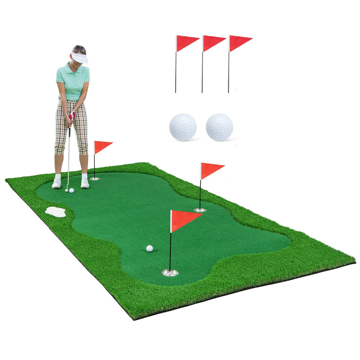 - More Accessories for More Fun: This putting green mat comes with 2 golf balls, 3 flags, 3 golf cups and 3 hole covers. Whether you’re having a fun game with your friends, or engaging in more serious practice, these plentiful accessories are sure to be useful at all skill levels.