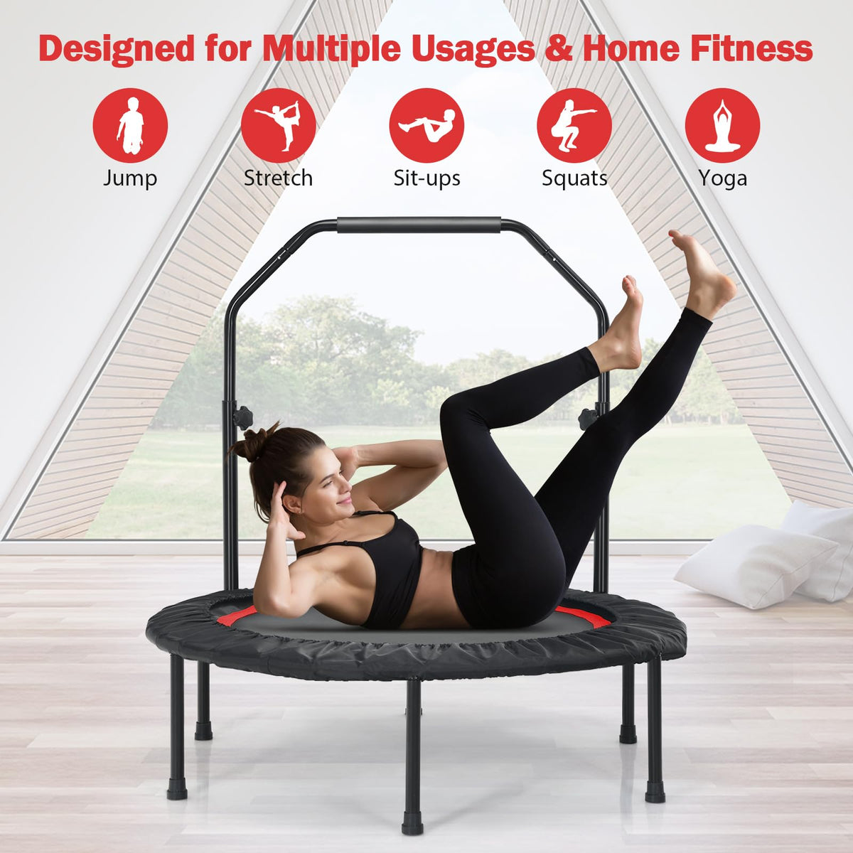 - 4 Level Adjustable Handle: Featuring 4 level adjustable handle bar from 42.5” - 51.5”, GYMAX mini trampoline is suitable for both kids and adults. Easy-to-operate knob makes it effortless to change height and no extra tools needed.
