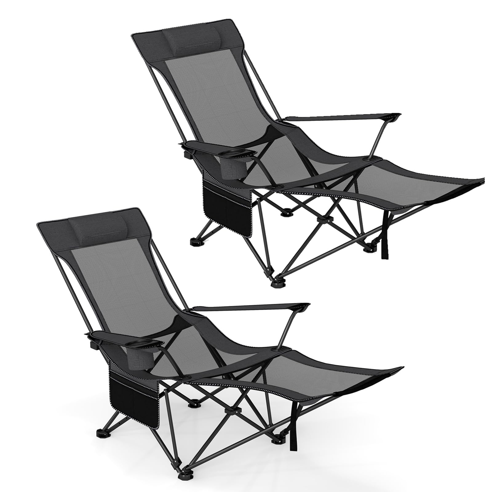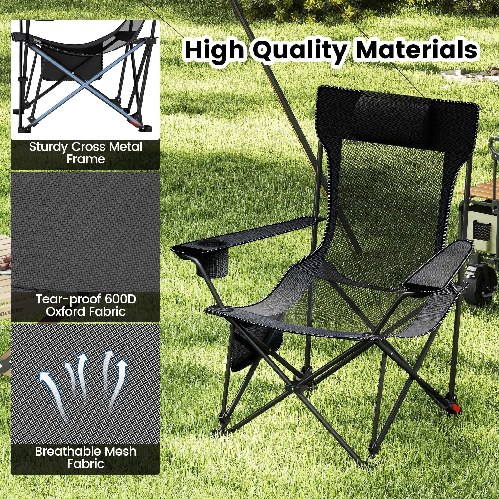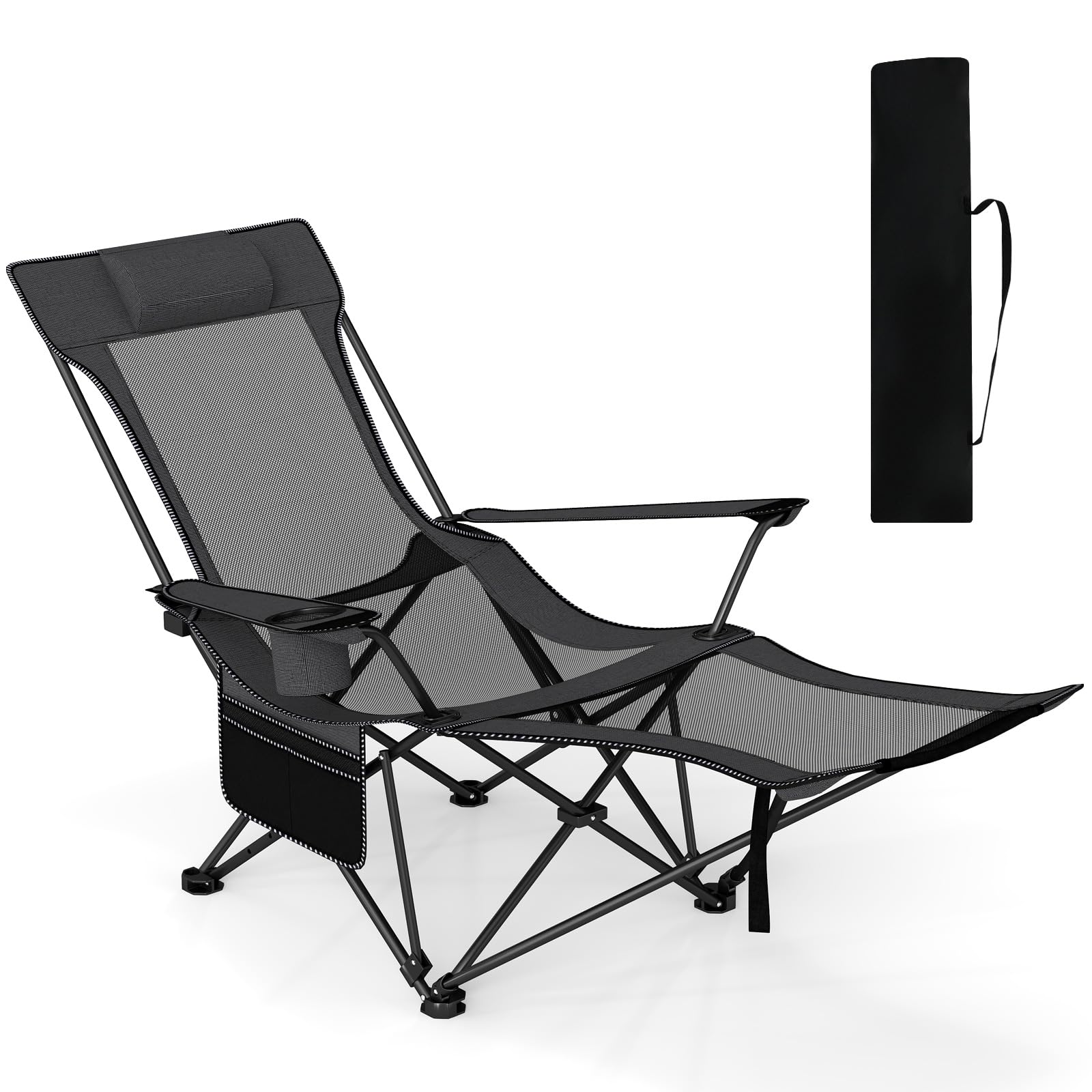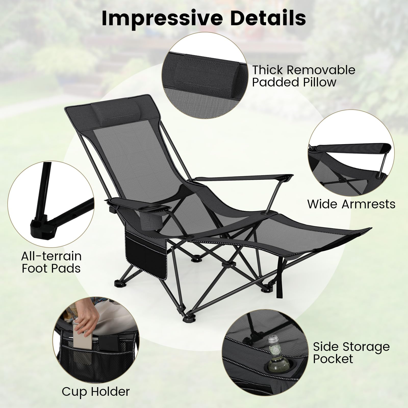 Boasting a distinctive convertible design, the folding outdoor chair effortlessly shifts from a lightweight camping seat to a recliner simply by detaching the footrest. Its collapsible structure makes it an ideal selection for a myriad of outdoor pursuits like camping, fishing, picnicking, beach outings, and more. Noteworthy is the 4 positional adjustment feature for the backrest, enabling an easy custom reclining experience. Constructed of high quality materials, the adjustable camp chair is built-to-last. The mesh seating area promotes air circulation, ensuring a comfortable and refreshing sitting encounter over prolonged periods. Moreover, fortified with oxford cloth and a sturdy metal frame, the reclining camping chair ensures reliability and robustness for all your outdoor escapades. Additionally, the impressive details like anti-slip foot will further enhance the stability.