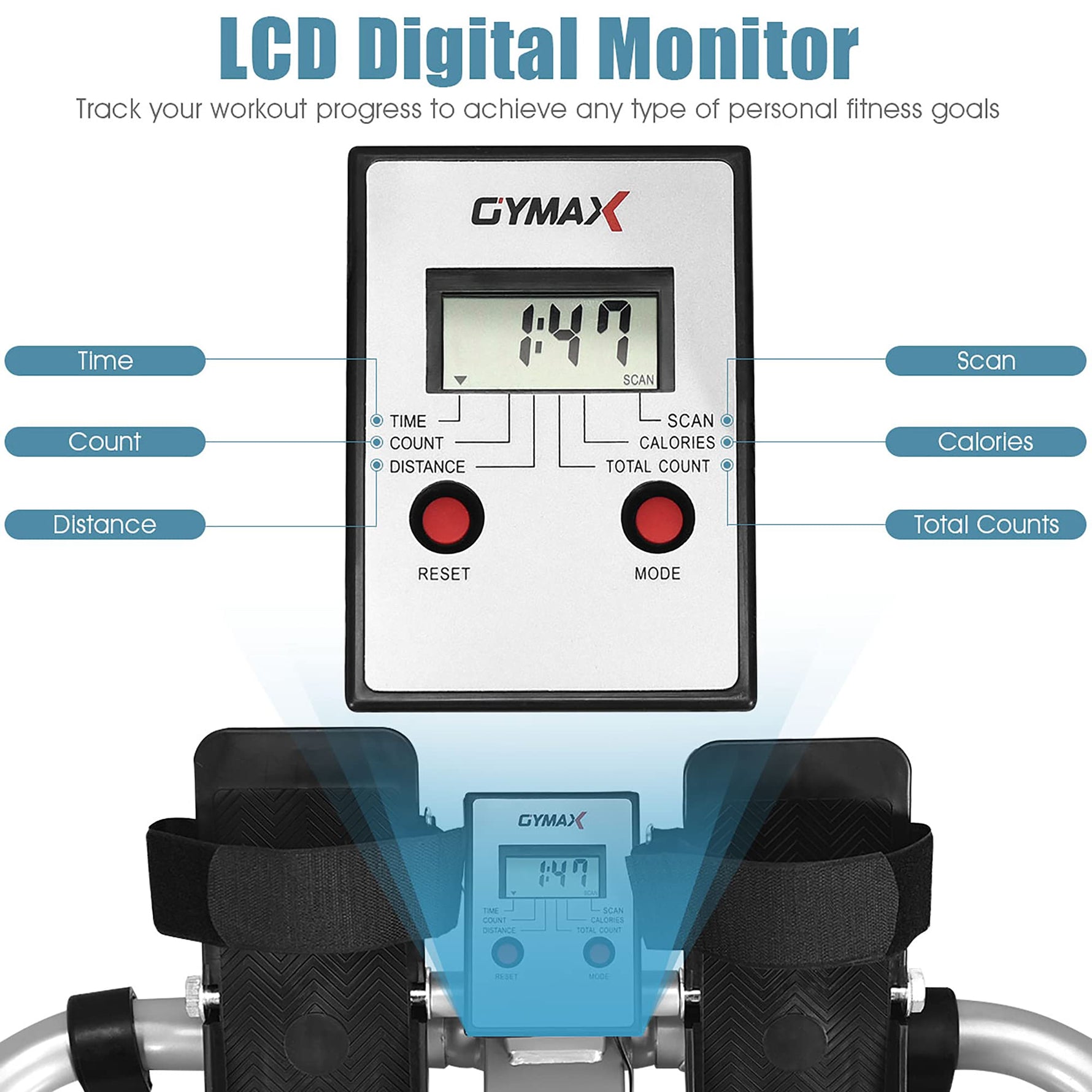 The adjustable hydraulic cylinder resistance offers multiple workout intensity at home. Grip the slip-resistant handlebars for full arm rotations, as the solid steel handlebar tilts with your body to deliver a smooth, fluid motion that engages your entire body. For better support and stability, the rowing machine glides along a smooth ball-bearing roller system. It features anti-slip textured foot plates with adjustable straps, a comfortable padded seat, and padded hand grips to ensure balance and safety during intense workouts. Stay motivated with the easy-to-read LCD monitor that displays your workout time, stroke count, calories burned, and total strokes. This rowing machine would be an excellent addition to your home gym.