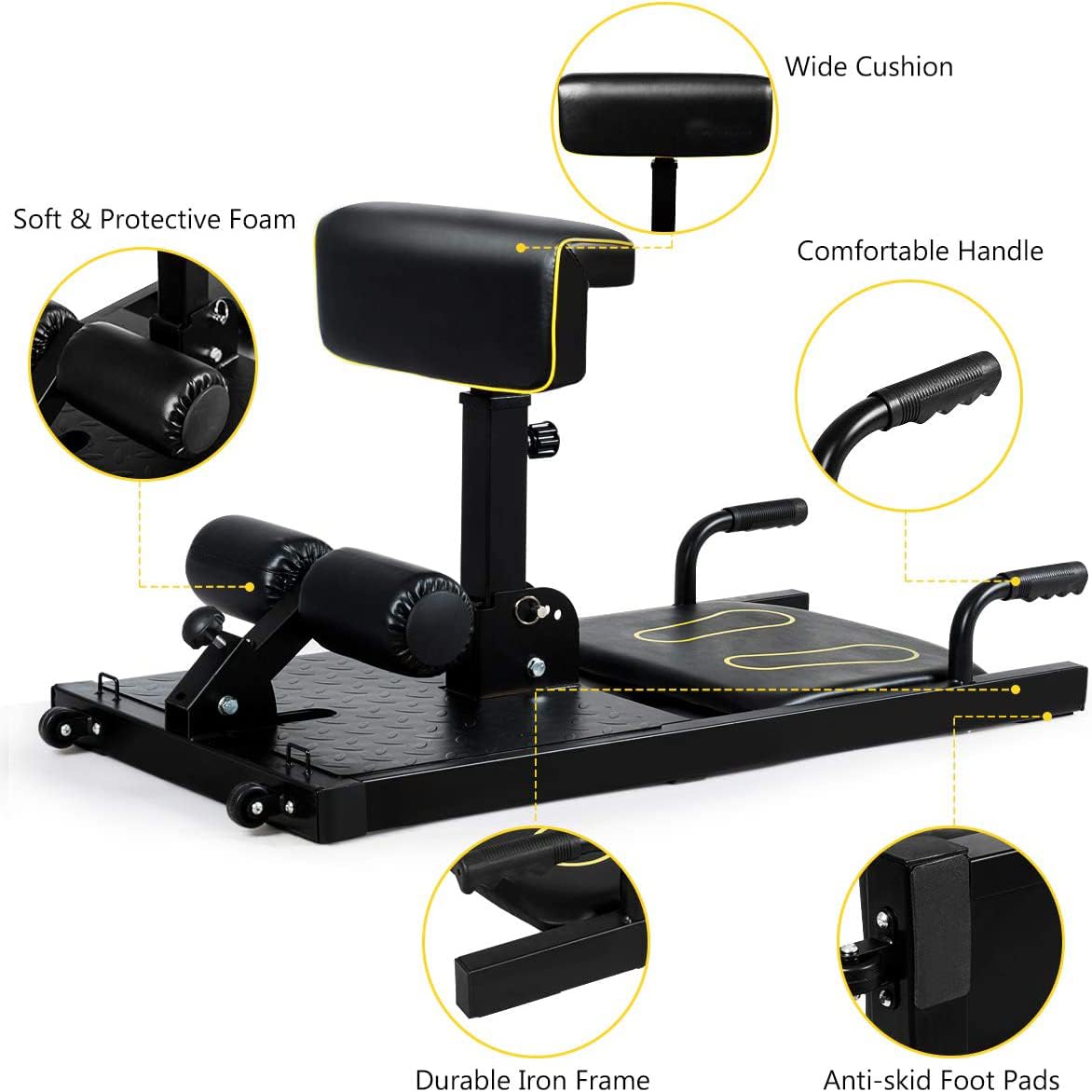 GYMAX Sissy Squat Machine, 8-in-1 Workout Machine with Adjustable Height & Protective Foam
