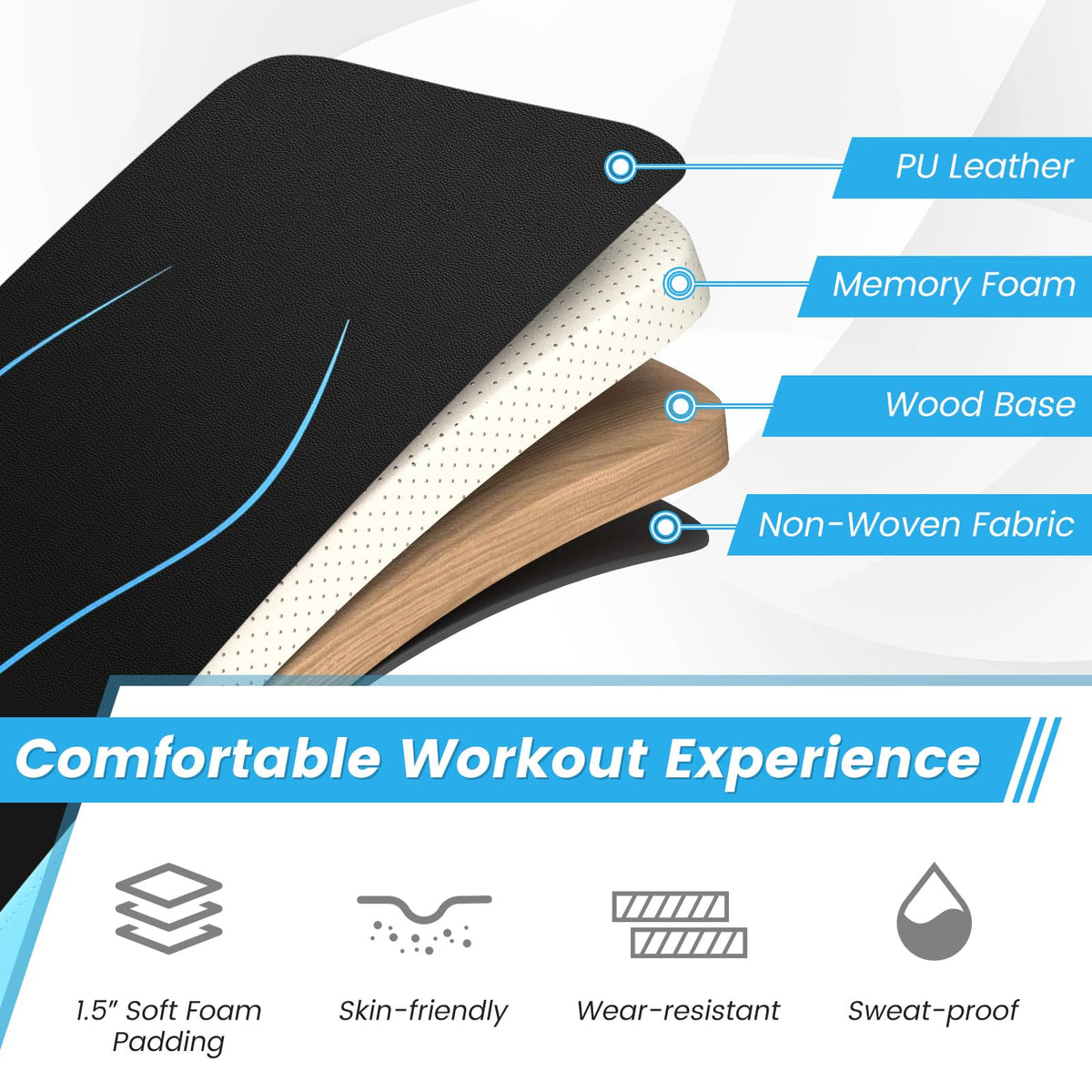 - 【Sturdy Workout Bench】Made of heavy duty steel frame with triangular structure, this workout bench is stable and hold up to 441 lbs. With premium PU leather, this decline bench is breathable and non-slip. Meanwhile, the slant bench offers comfortable lying experience with its high dense foam padding.