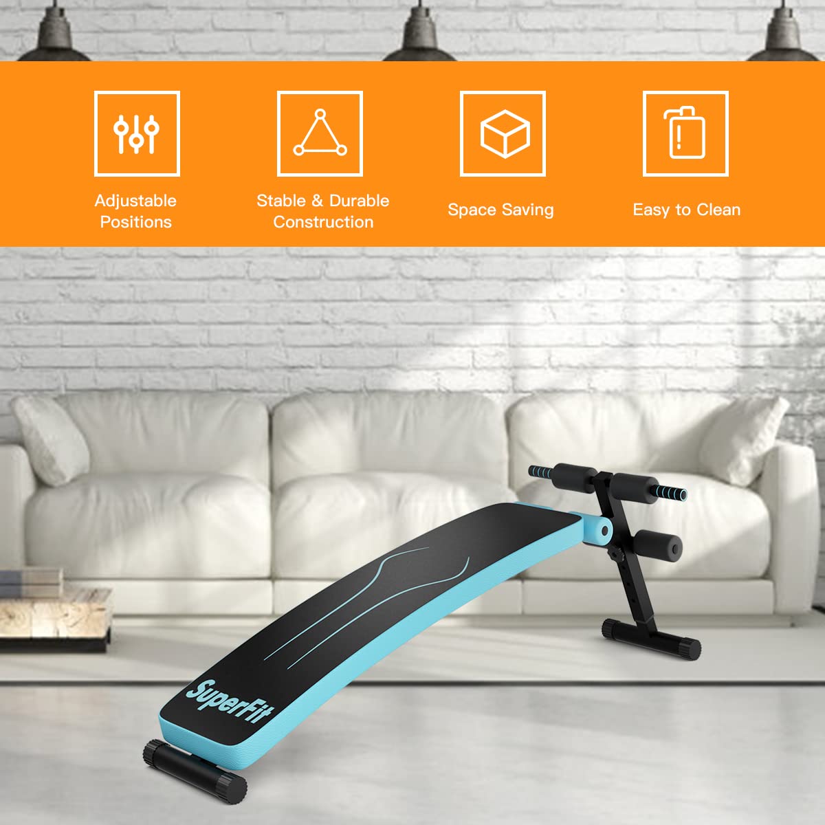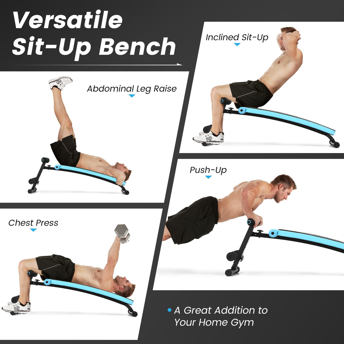 GYMAX Sit up Bench, Folding Adjustable Workout Bench for Ab Exercise, Curved Incline/Decline Slant Bench