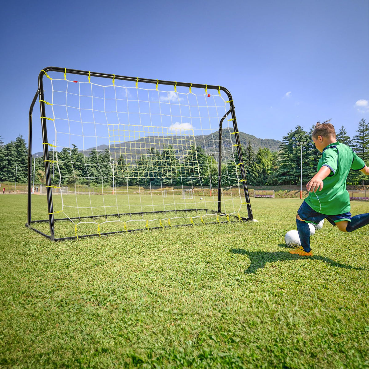 - 2-in-1 Soccer Goal Set: Coming with a soccer net and a soccer rebound net, this soccer training set can be used as a soccer rebounder and a soccer goal, which enables your little athlete to practice soccer shooting and goalkeeping.