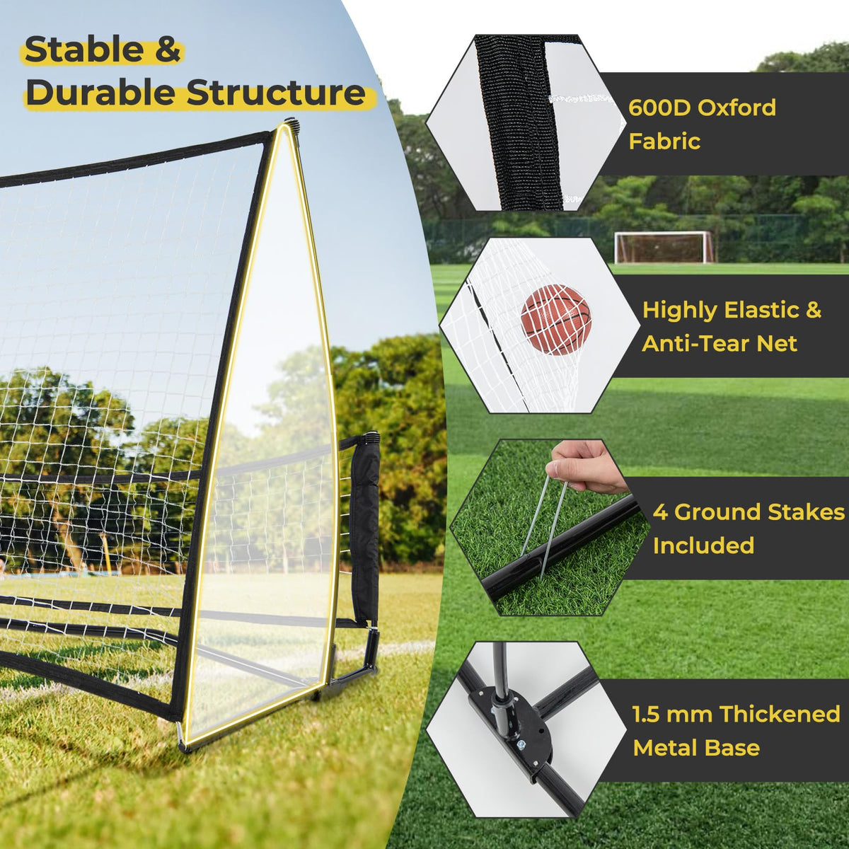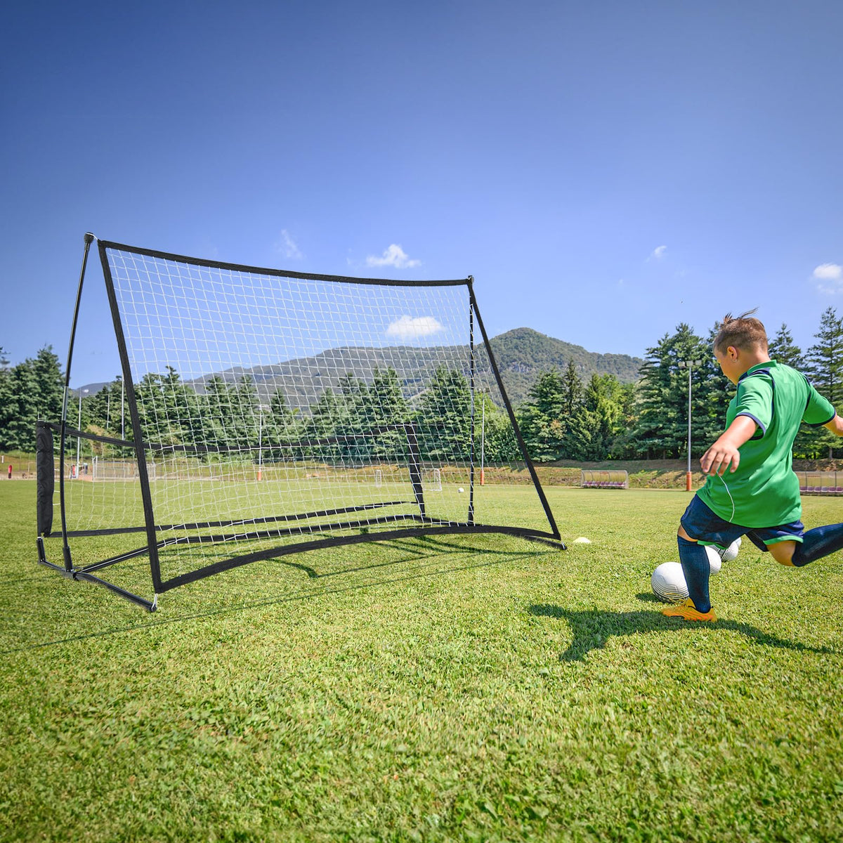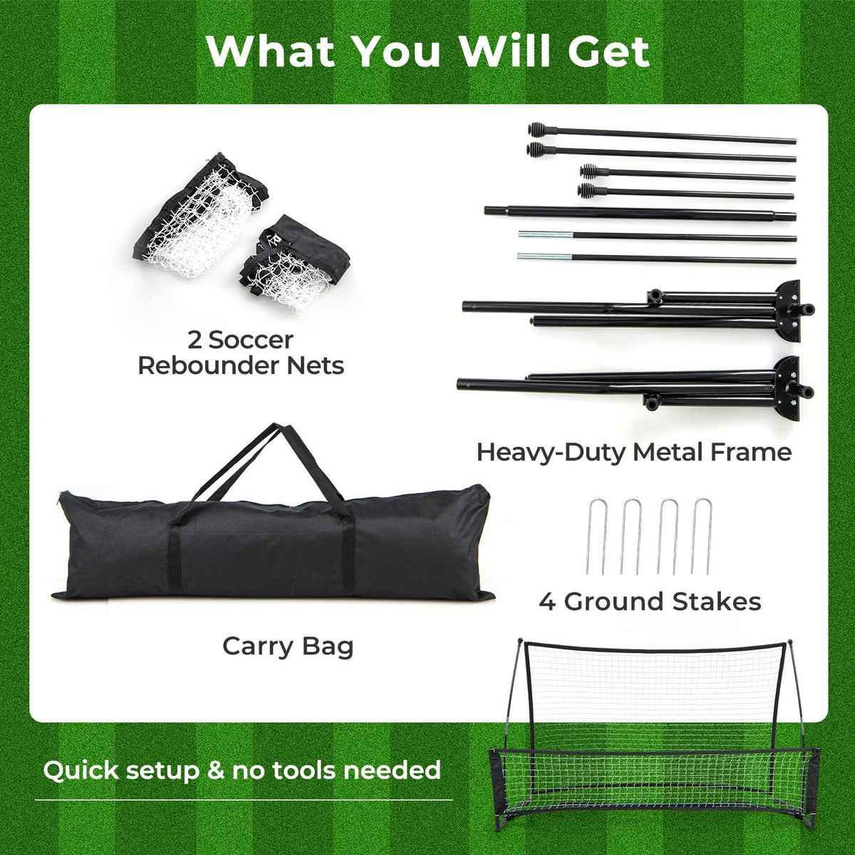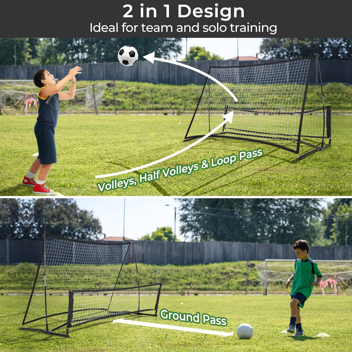 - 2 in 1 Design: This soccer rebounder features 2 net systems for intense practice of volleys, half volleys, loop pass and ground pass. And this multifunctional training net enable more than 2 players to train at the same time, ideal for both team and solo training.