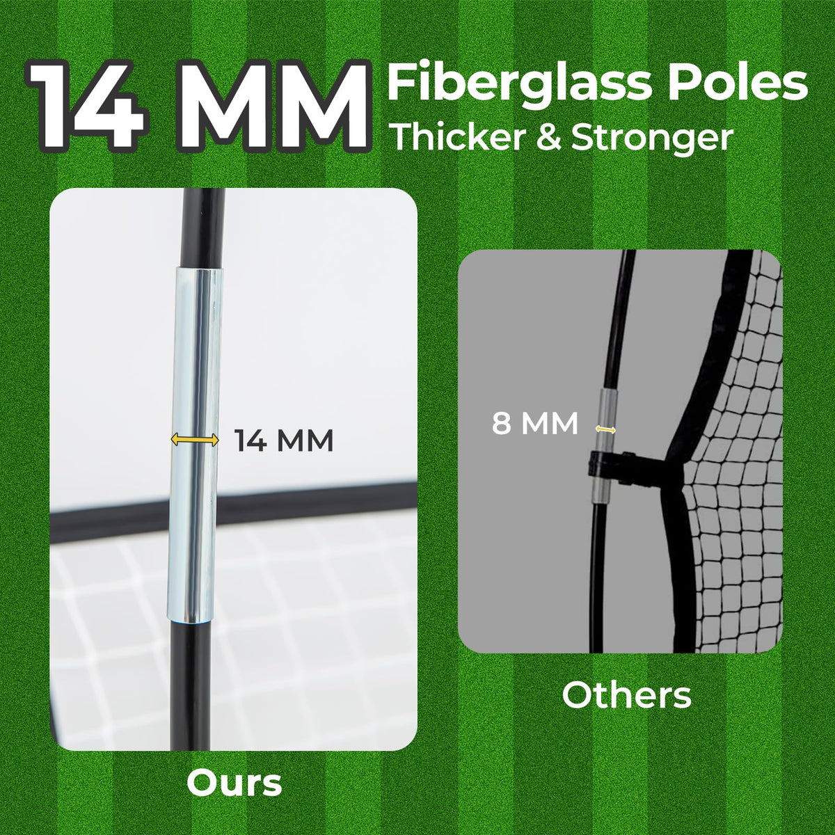 - Durable Structure: This soccer trainer is equipped with 14 mm thicker and stronger fiberglass poles and 1.5 mm thickened metal base for long service life. Highly elastic and anti-tear nets are attached with Oxford fabric fabric cloth cover, which provides powerful support and rebound.